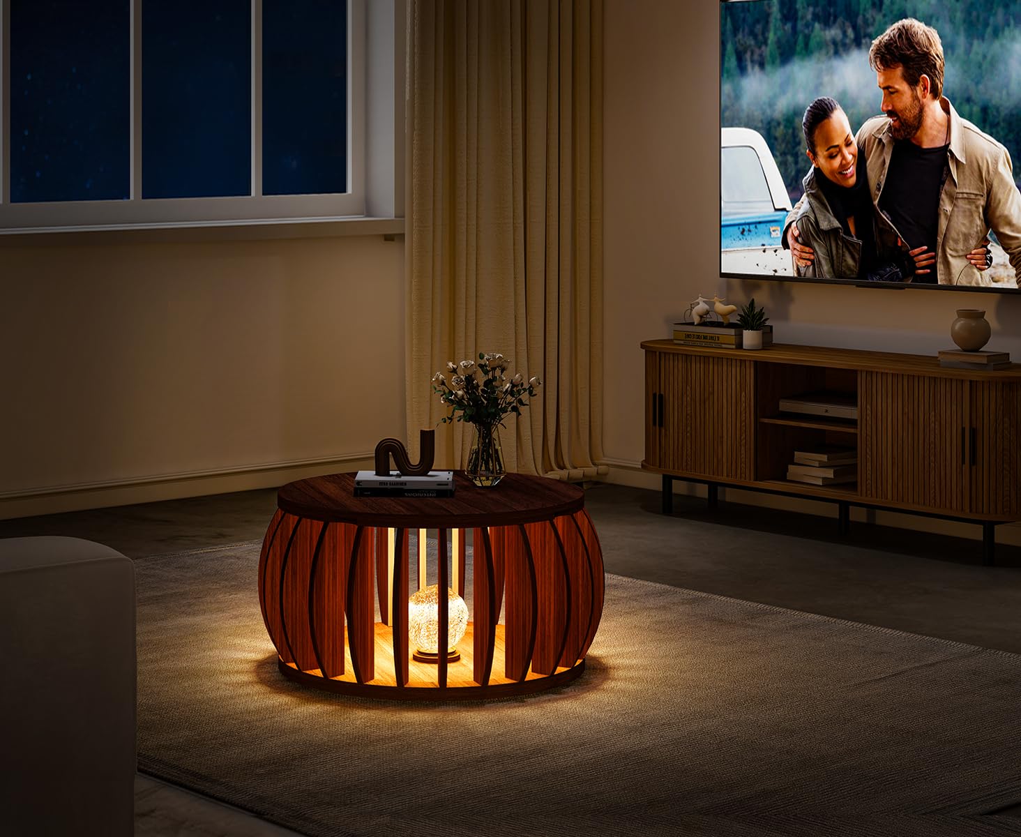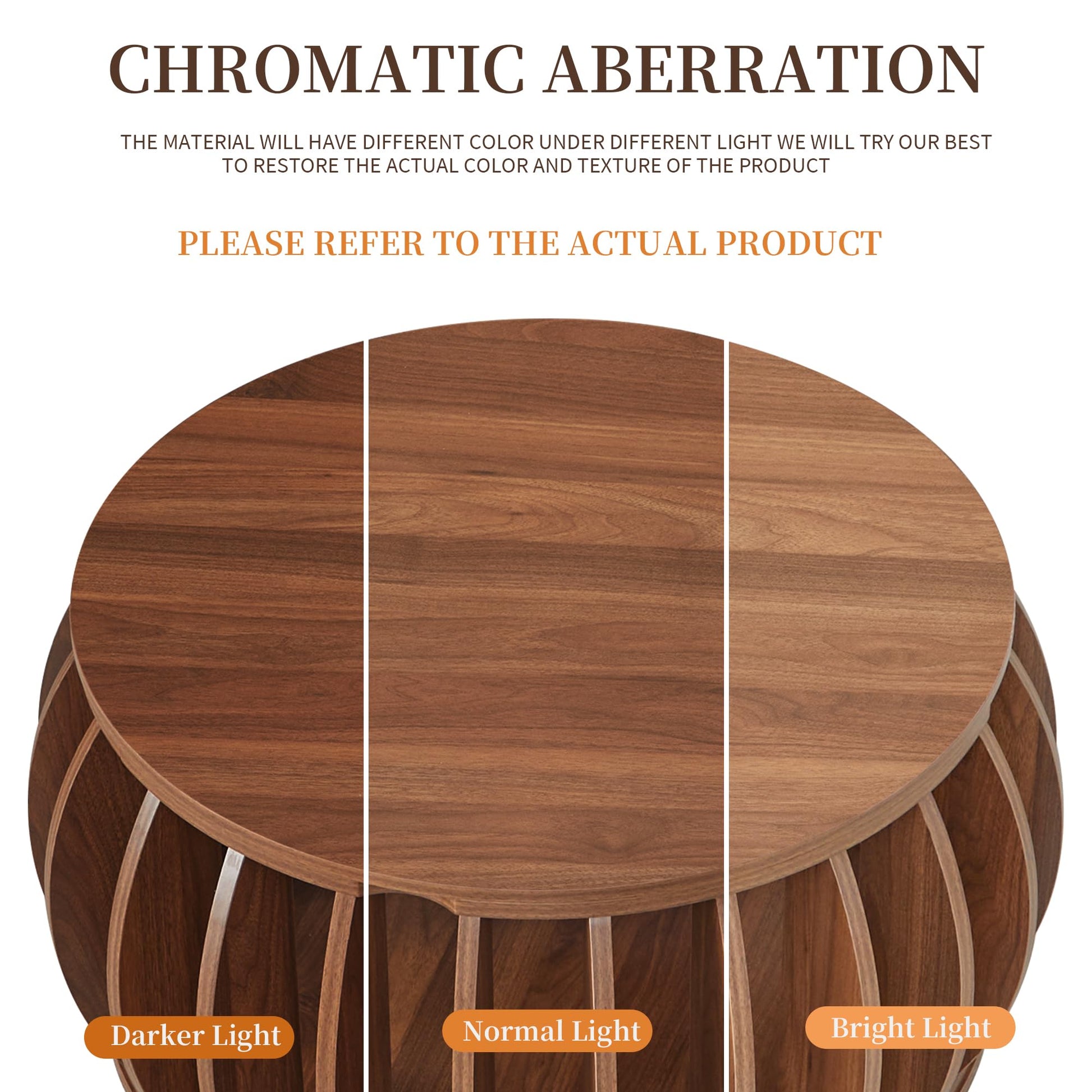 Bifins Drum Coffee Table with Storage,31.5” Wood Round Coffee Table,Farmhouse Pumpkin-Shaped Center Table for Living Room Home Office (Walnut)