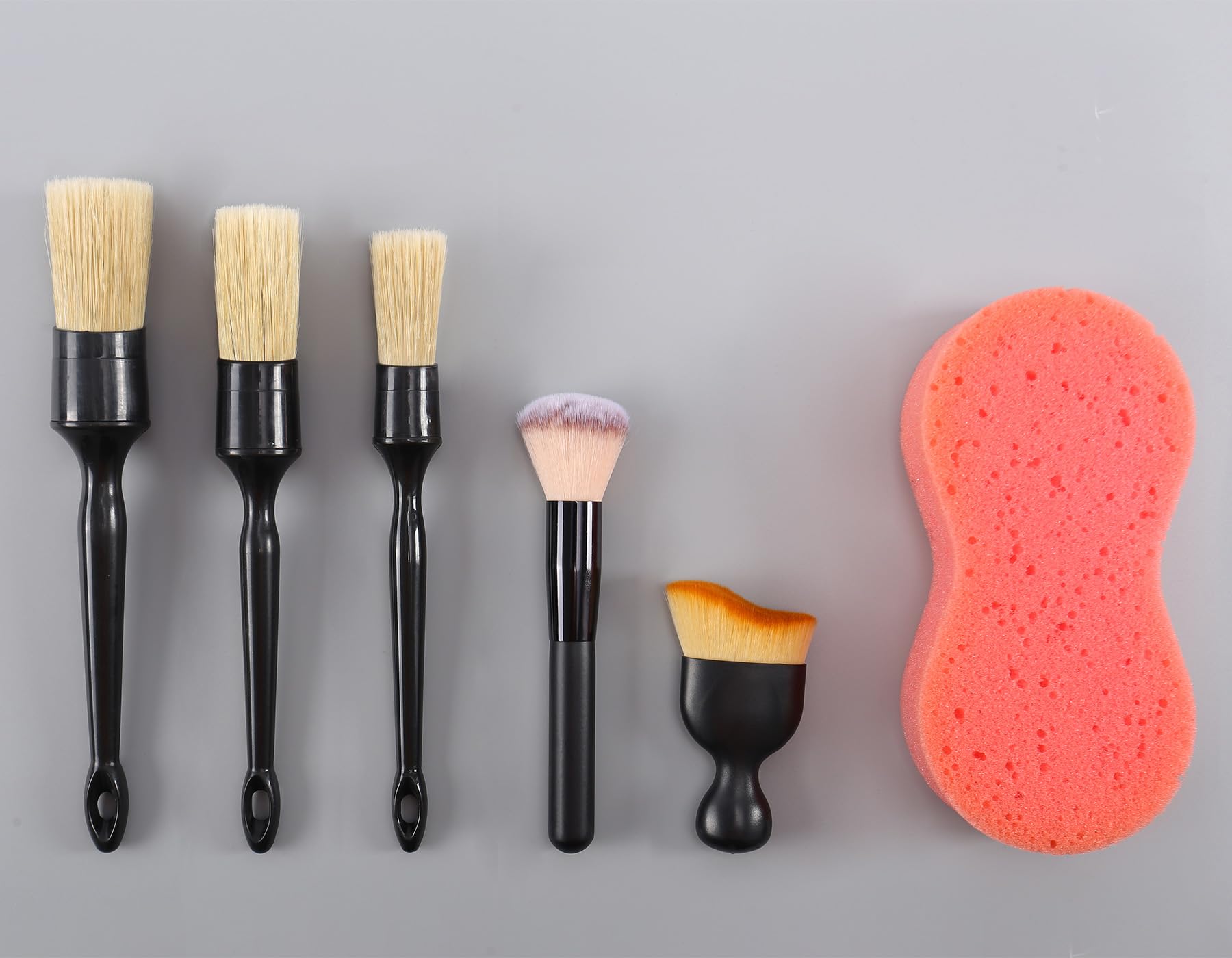 - [Multi- functional & Various Size] 6PCS car detailing kit, 1 set to meet your cleaning needs. Excellent completion of all works required for external and internal details! Safe for car, truck, SUV, RV, motorcycle, & more. This brush set can also be used for washing your kitchen, toilet, floor, yacht, etc.
