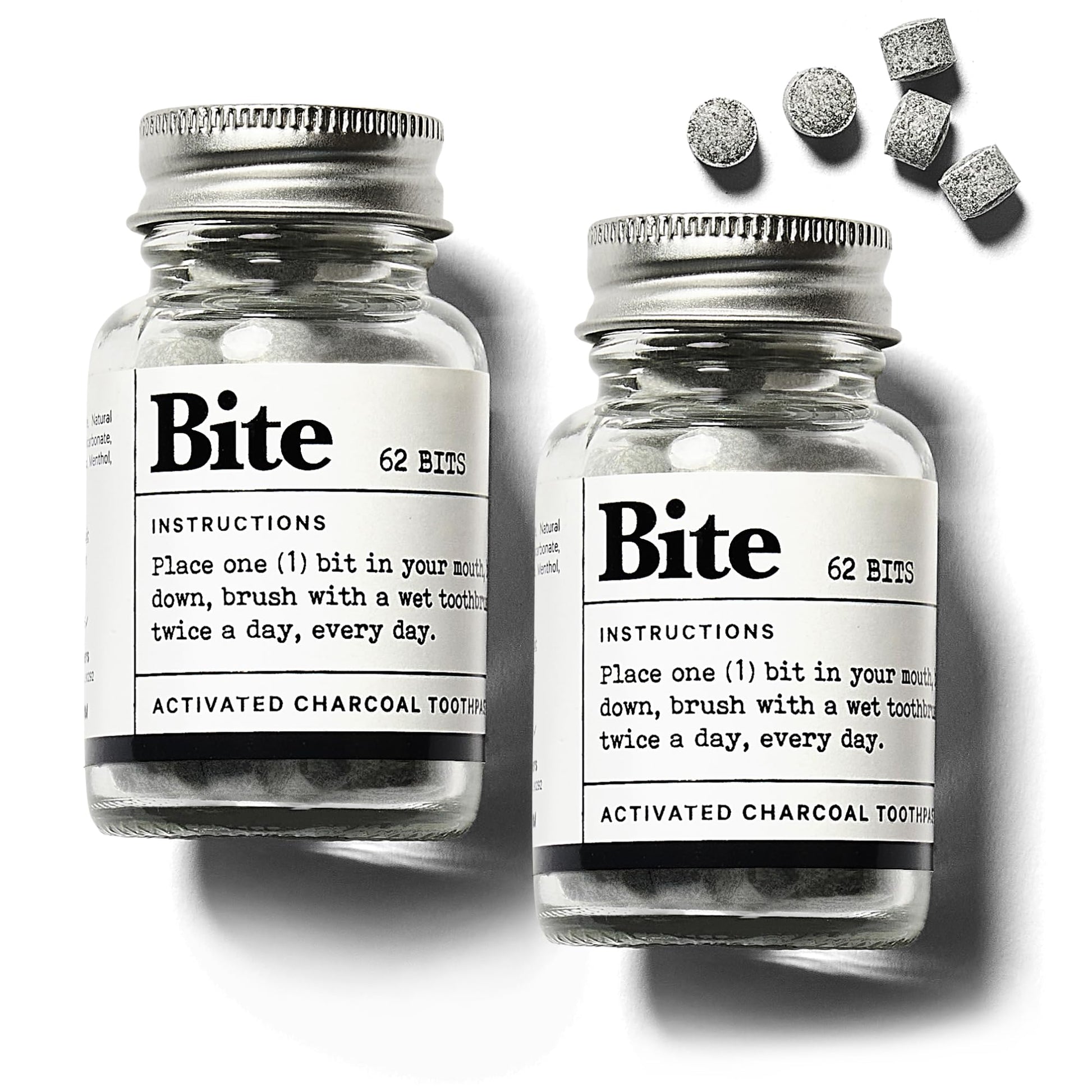 Bite Whitening Toothpaste Tablets – Nano Hydroxyapatite & Xylitol (Mint) | Sensitive Teeth Friendly | No Fluoride, Vegan, Cruelty-Free | Travel-Size | 2 Bottles (124 Bits) | Made in USA