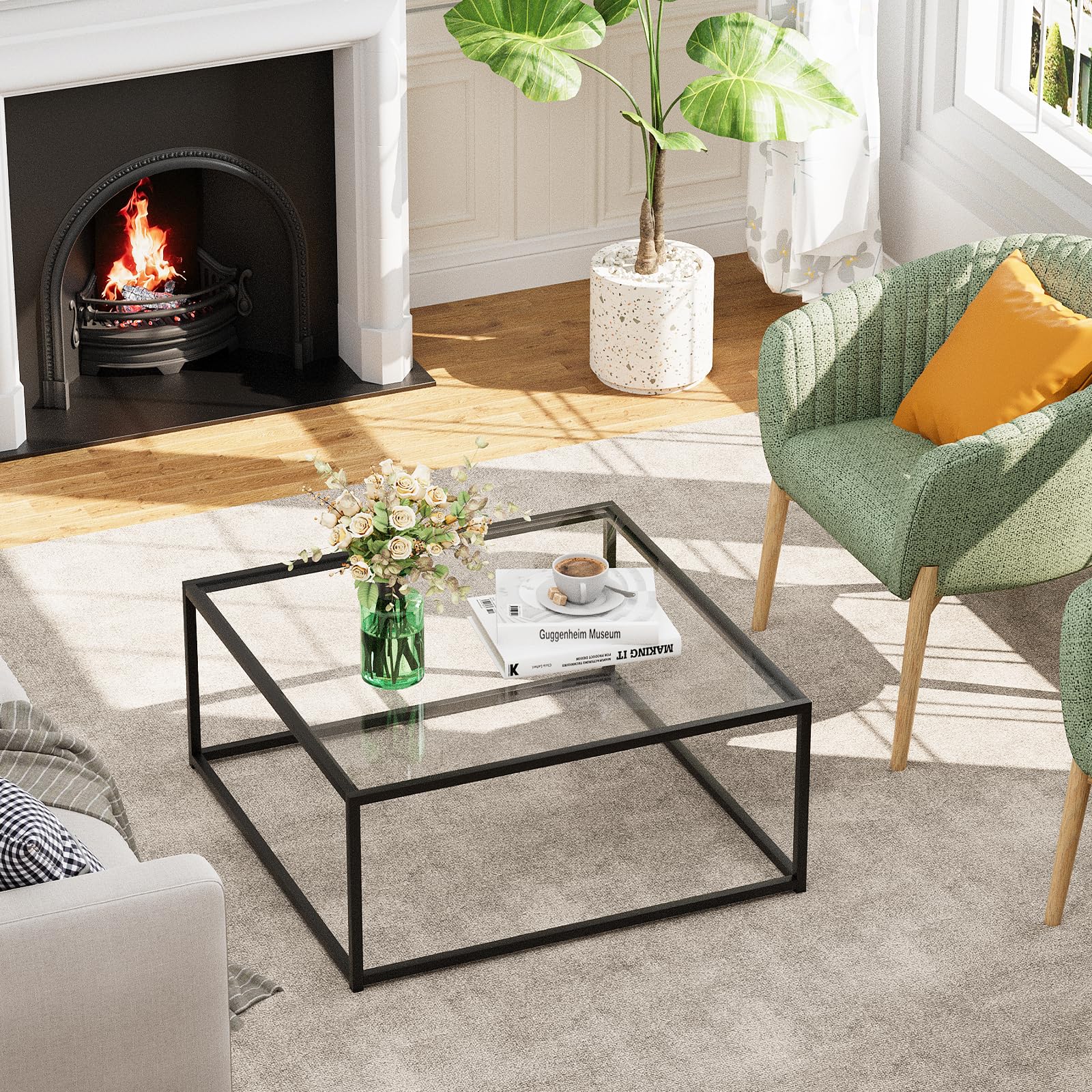 - [Easy Assembly] - Only need 5 minutes, you will get a simple and exquisite square glass coffee table. Our center table combines the clear glass, the minimalist design also adds unique aesthetic to your room.