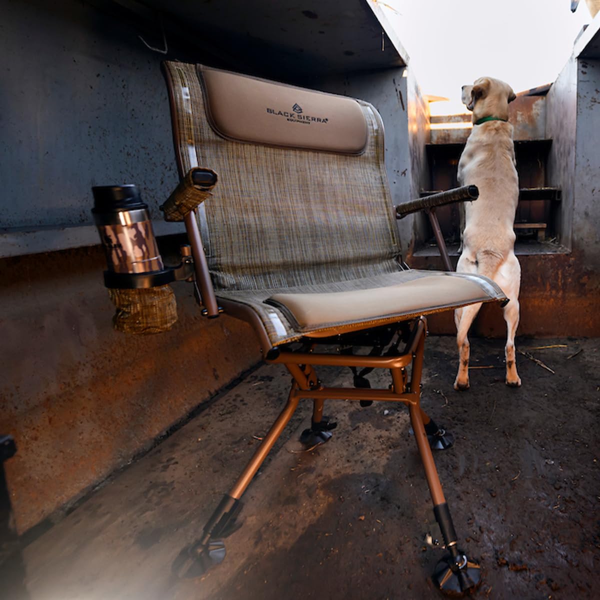 Black Sierra Heavy Duty Swivel Hunting & Camping Chair Supports 300 Lbs, XL 360° Silent Swivel for Hunting Blind, Portable Ground Chair w/All Terrain Feet, Padded Armrests w/Carry Strap and Cupholder