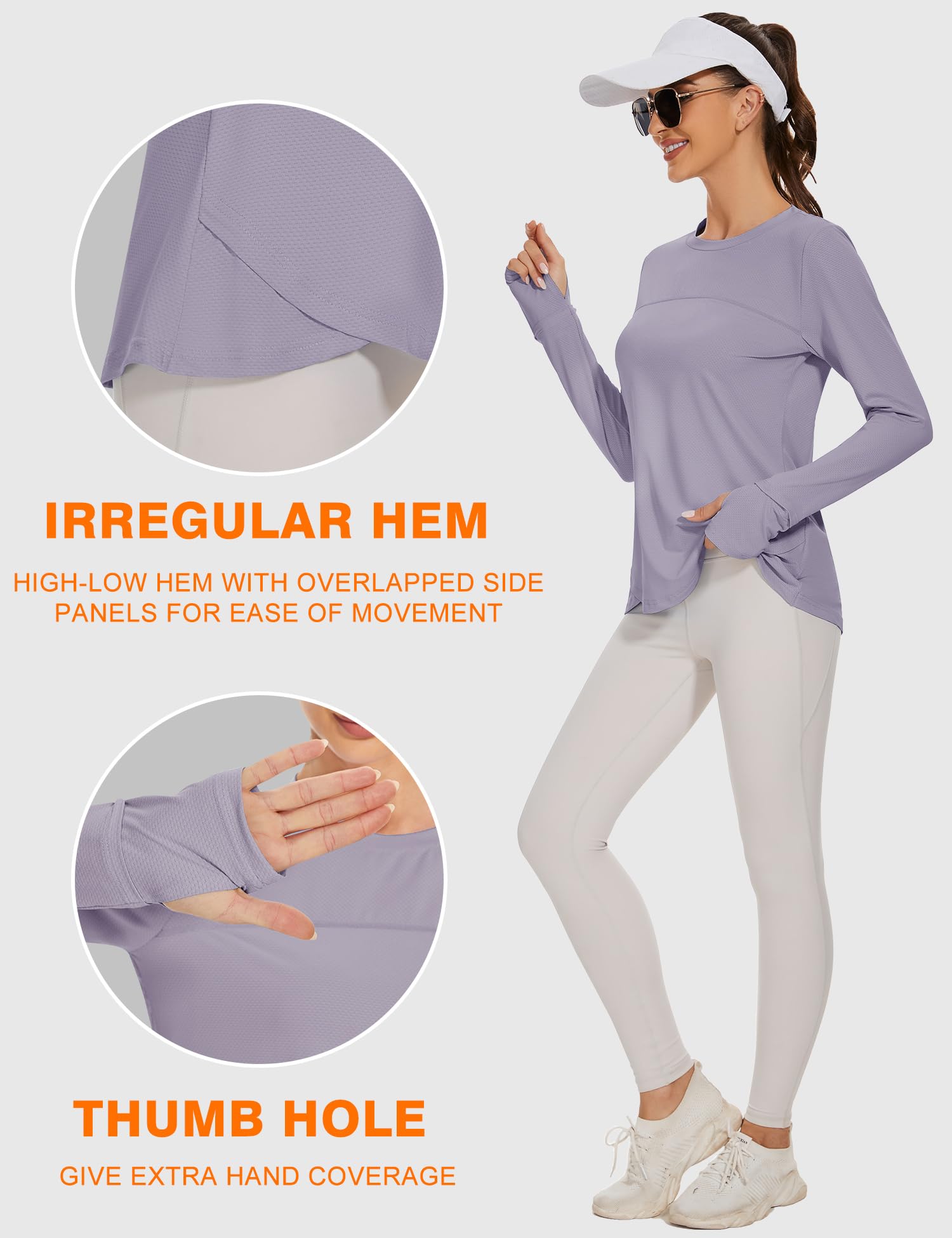 - 【Sun Protection】: With UPF 50+ (UV block) technology,this Ladies Sun Shirts Long Sleeve UV Protection Shirts provides maximum protection against harmful ultraviolet rays, safeguarding your skin during outdoor activities such as fitness,jogging,cycling,golf,fishing,hiking,boating,kayaking,climbing,running,beach days,workouts,swimming,rashguard,yard work,athletics,seaside activities,sailing, and traveling.Our Women's Athletic Shirts will keep you protected.