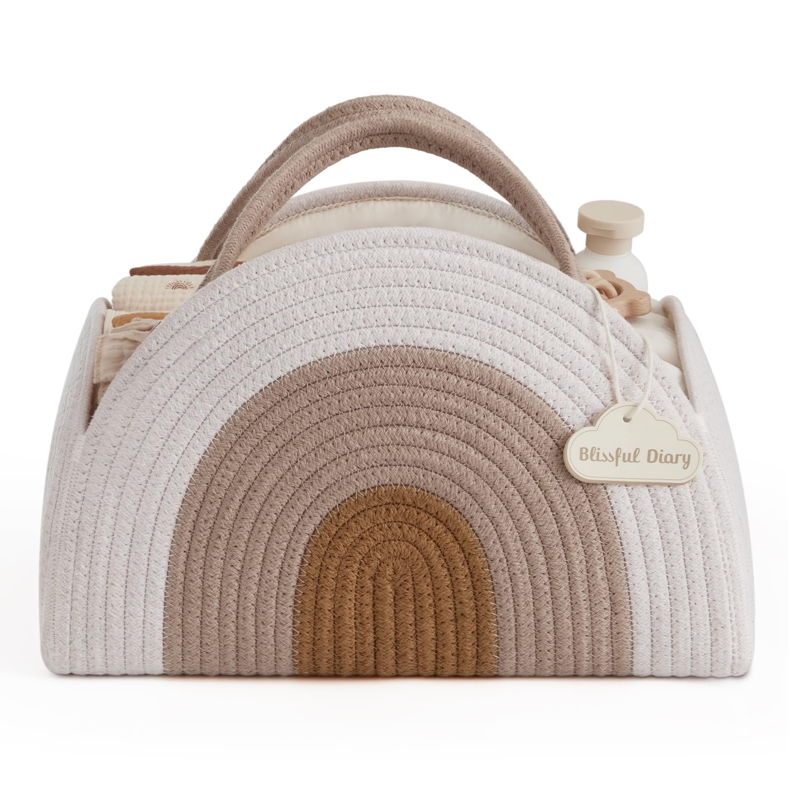 Blissful Diary Baby Diaper Caddy Organizer, Cotton Rope Diaper Caddy Basket, Large Storage Basket for Newborn Boys and Girls, Gift for Baby Shower List, Newborn Essentials, Earthy Rainbow