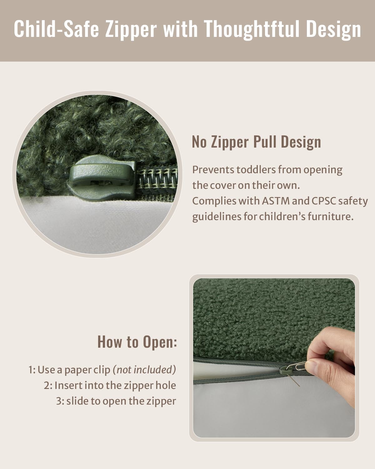 - High Density Foam and Washable Cover: High-density memory foam provides sturdy support for the toddler couch. The cover is made of soft and breathable teddy fleece fabric, which is skin-friendly and comfortable, easy to remove and machine washable