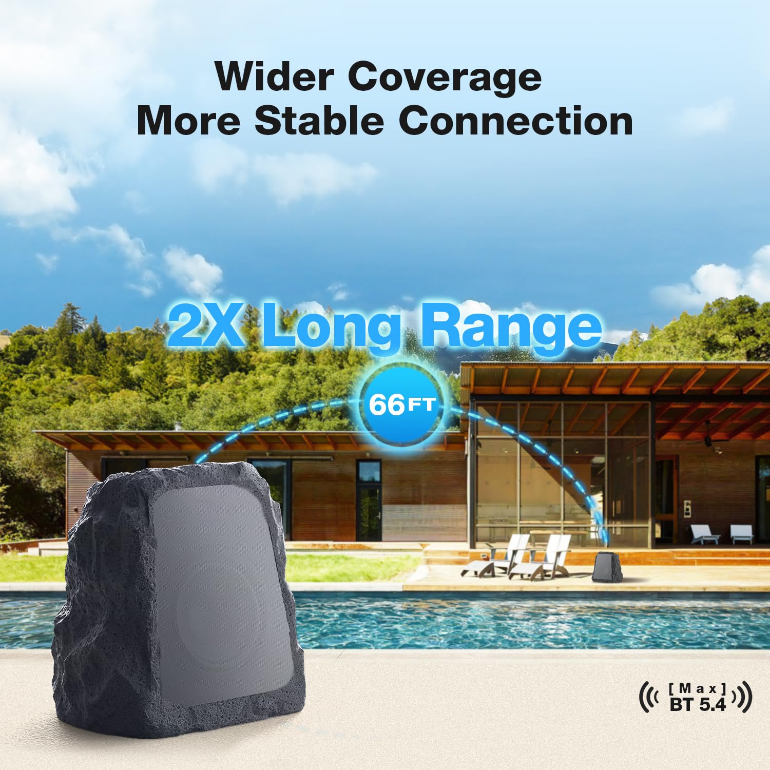- Wireless Design, Perfect for Outdoors: BlitzRock rock-style outdoor speaker waterproof blends seamlessly into your garden or backyard decor, keeping your music the center of attention