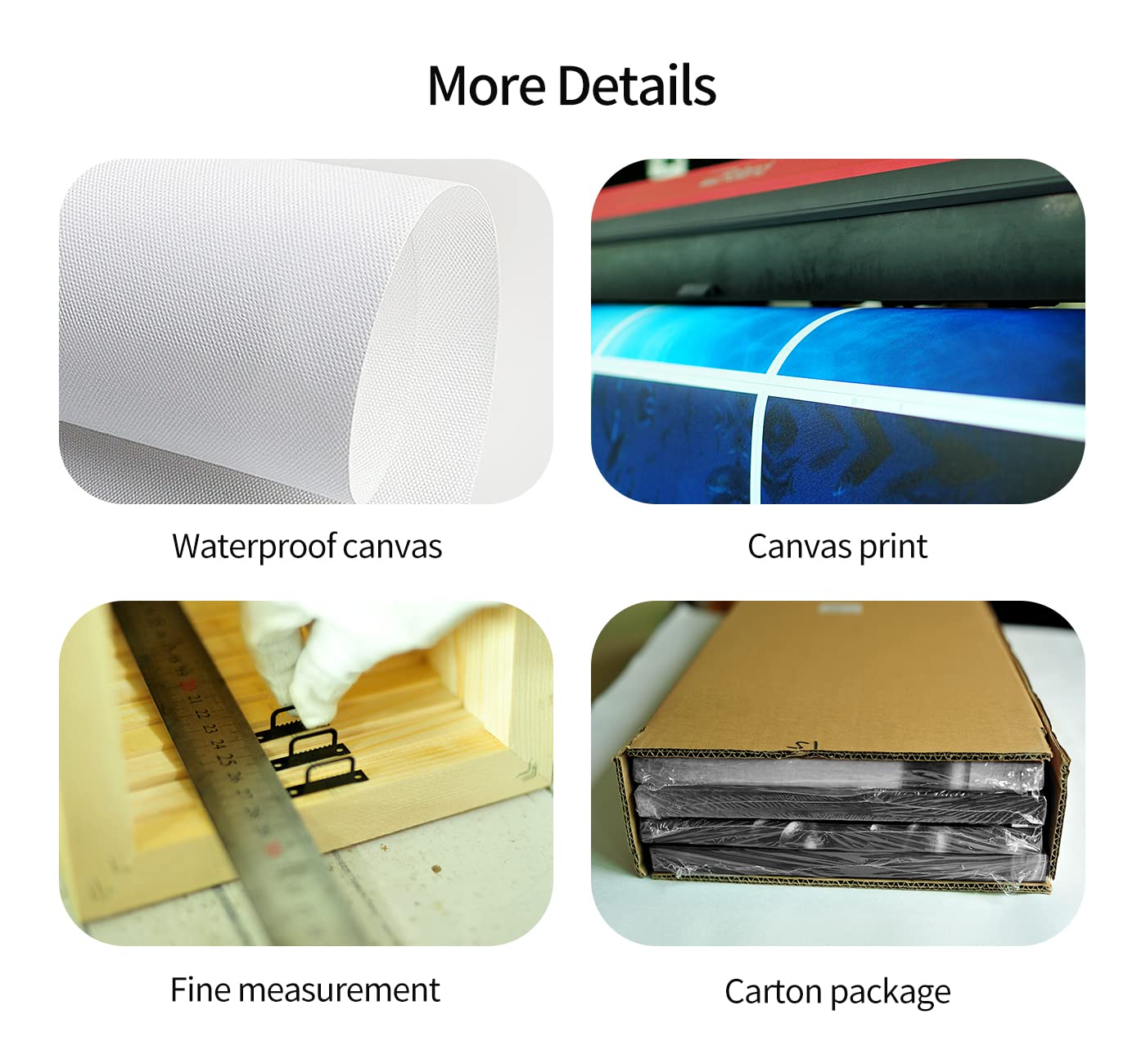 - Waterproof Canvas: Use modern advanced micro-spraying technology, well preserve the texture of the HD picture image when printed on the canvas, along with its rich color. It is flat waterproof canvas.