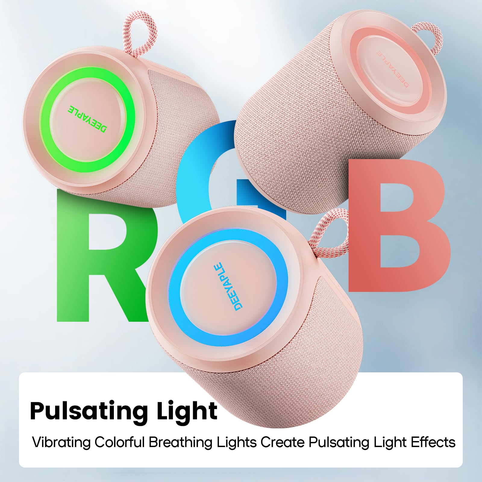 Bluetooth Speaker Wireless,IP67 Waterproof & Dustproof Portable Speaker with Lights,15W Loud Stereo Sound, 2500mAh Battery All Day Playtime, TWS Pairing, BT5.3, Home/Party/Outdoor/Beach (Pink)