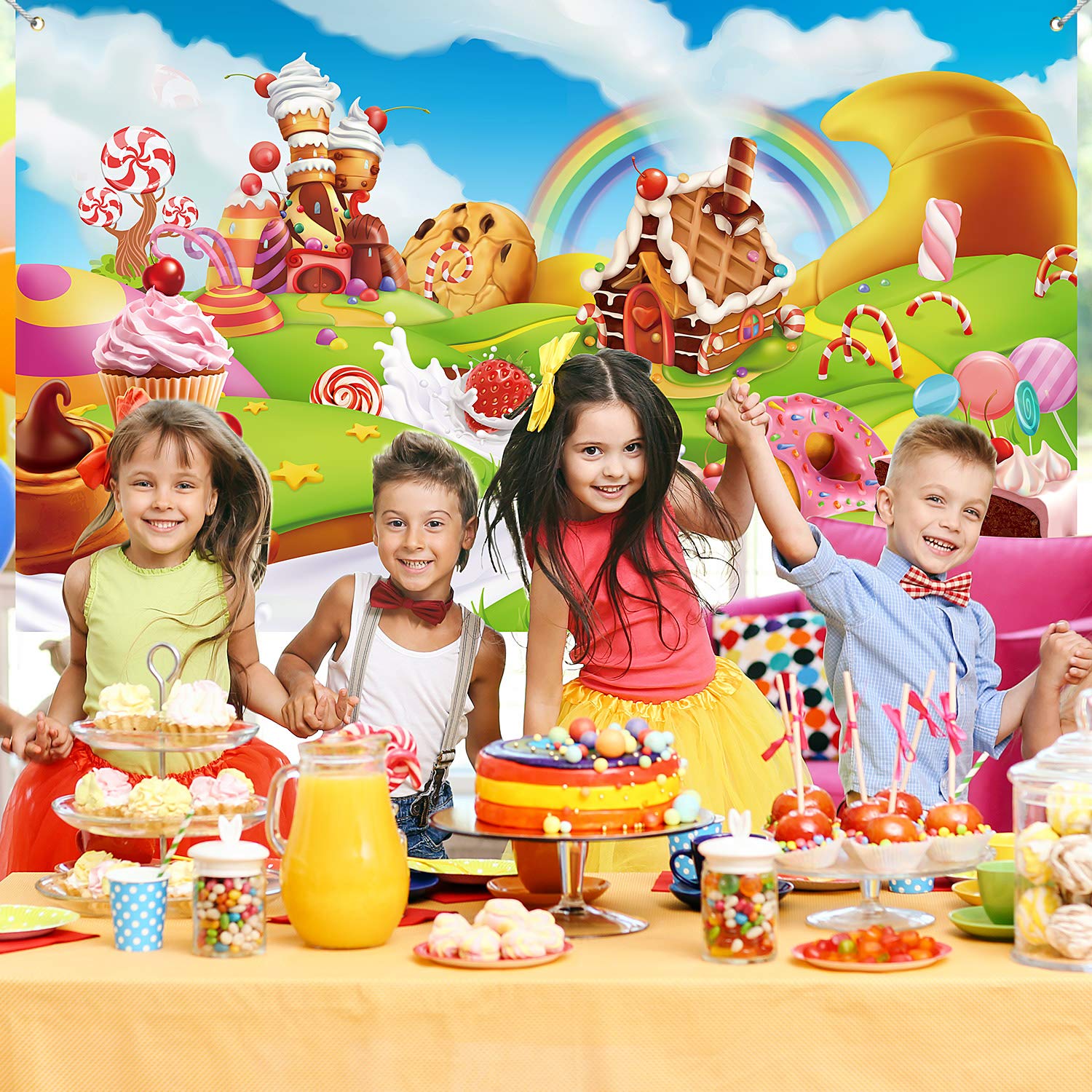- Size: the candy backdrop measures 185 x 110 cm/ 72.8 x 43.3 inch, it is large enough for the candy land party themed decoration and photography, it will add an extra fun to the party