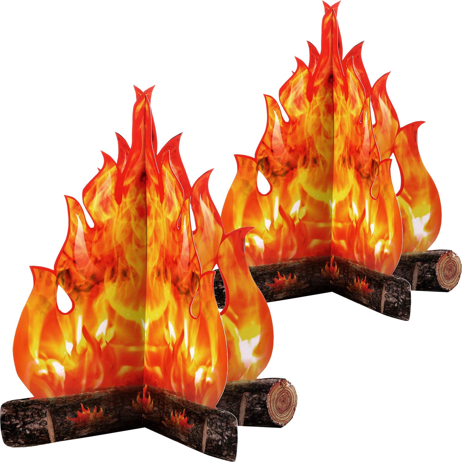 Boao 2 Set Fake Fire Fake Flame Camping Decoration 3D Cardboard Campfire Centerpiece Artificial Flames Campfire Party Decoration for Camp Bachelorette Christmas Party(12 x 10 Inch,Gold Orange)