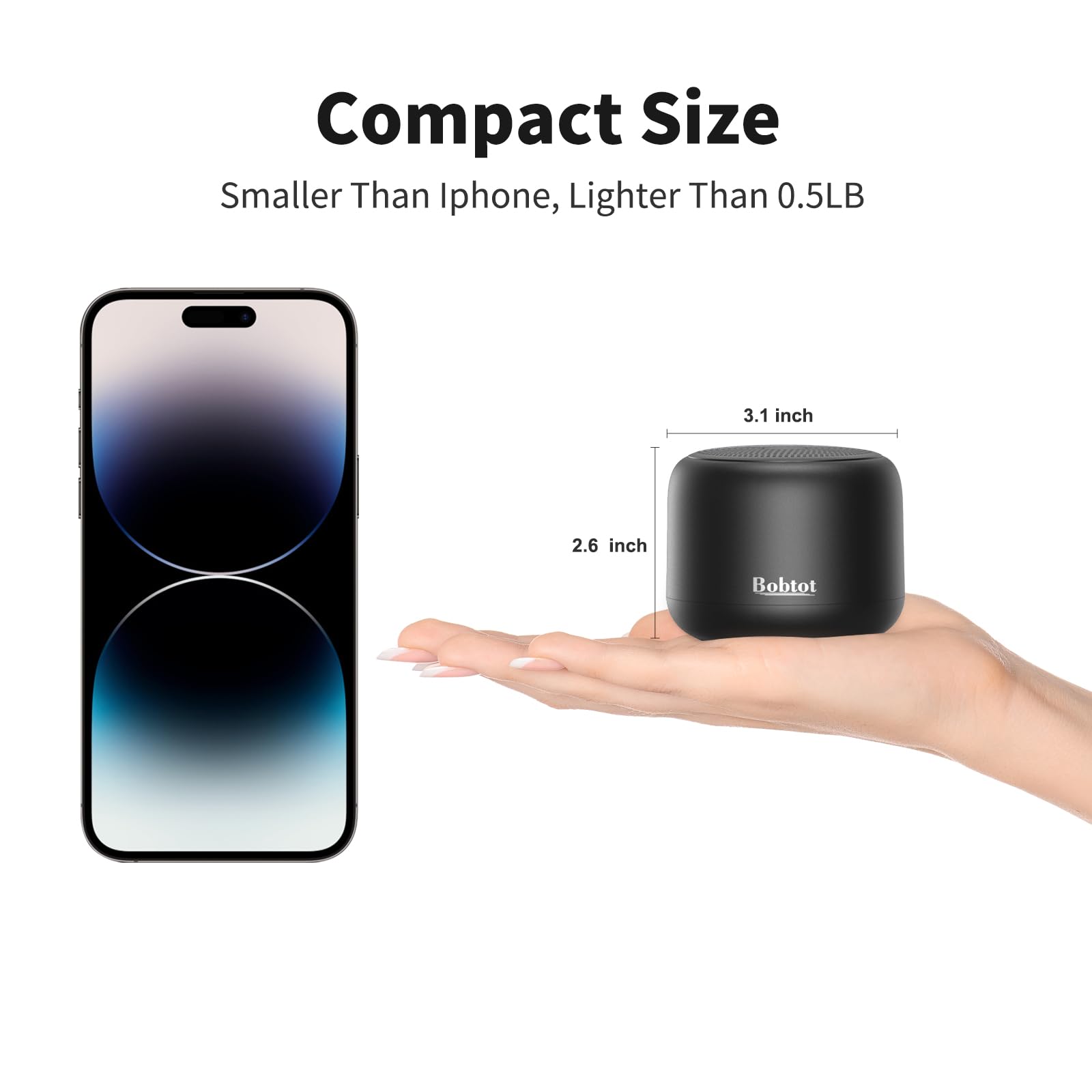 Bobtot Portable Bluetooth Speakers with Strap Easy to Carry, Wireless IPX5 Waterproof Mini Speaker with Loud Stereo Sound, 20 Hours Playtime, Rechargeable Battery, Built-in Microphone, Black