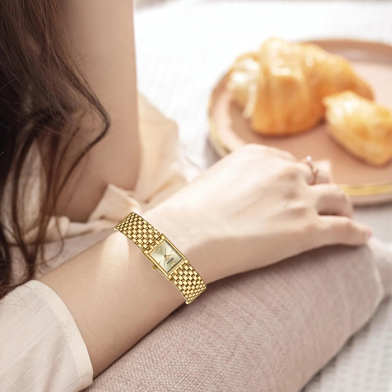 - ELEGANT AND FASHIONABLE:Our luxury gold watches for women feature a sleek rectangle case with a perfect smooth radian, exuding elegance and style. The simple face and luxurious gold plating make it a fashion statement.