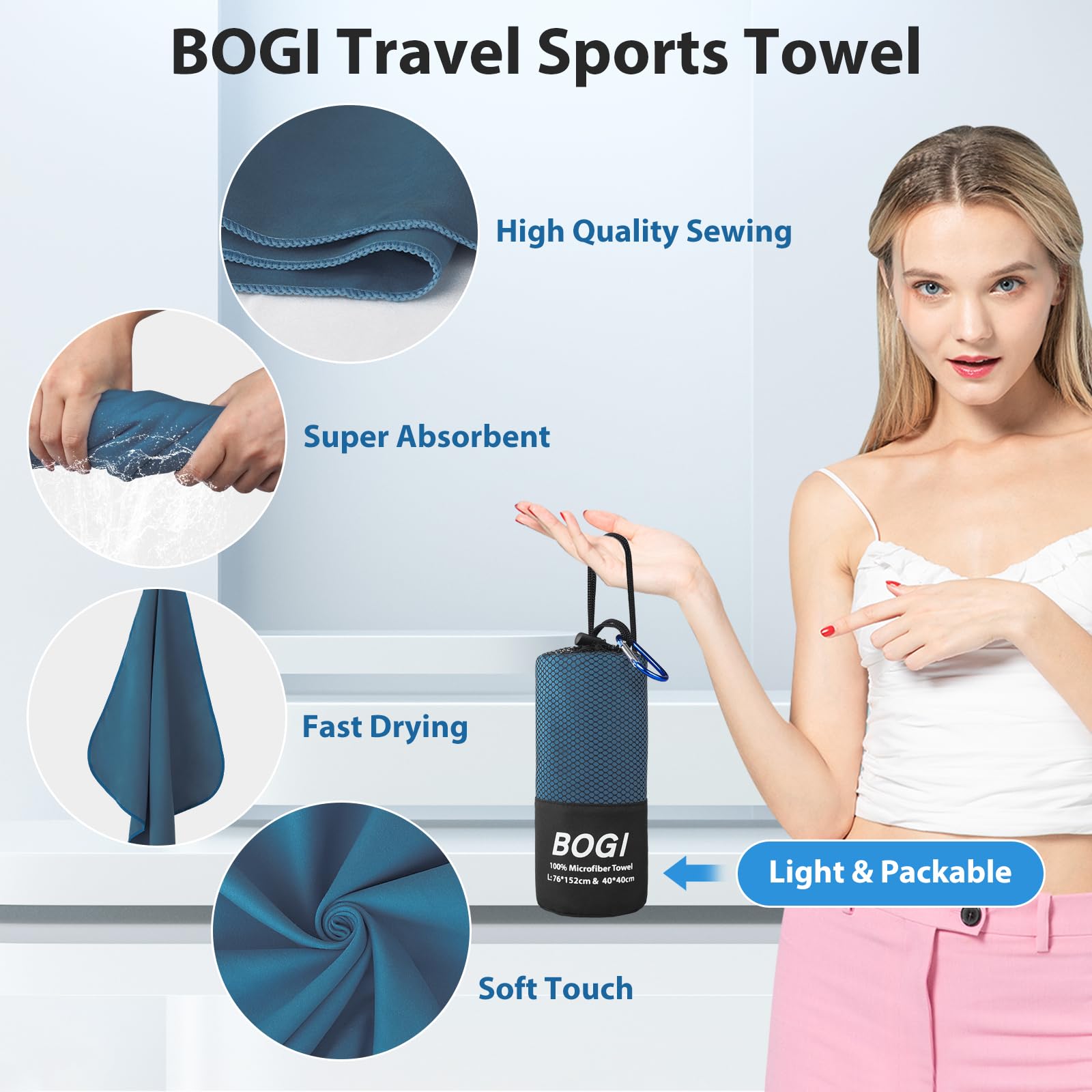BOGI Microfiber Travel Sports Towel-Quick Dry Towel, Soft Lightweight Microfiber Camping Towel Absorbent Compact Travel Towel for Camping Gym Beach Bath Yoga Swimming Backpacking (M:40''x20''-Nblue)