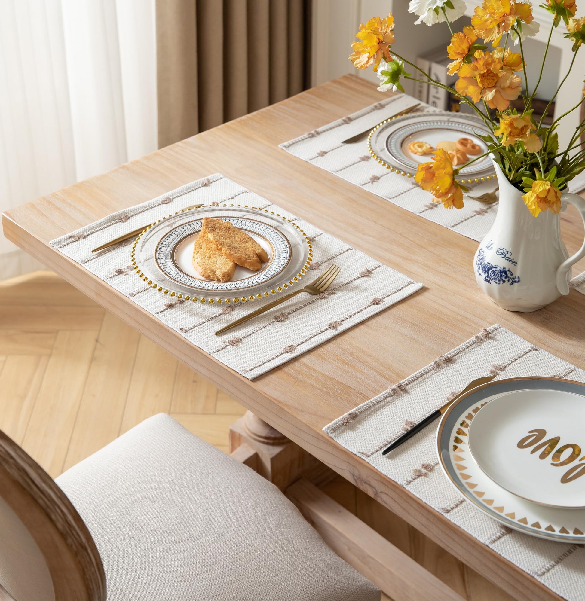- 【Dining Room Decoration】Perfect for farmhouse and bohemian rustic styles, these neutral placemats are a great basic for dressing up formal dinners or casual events; easily adding texture and beauty to any table
