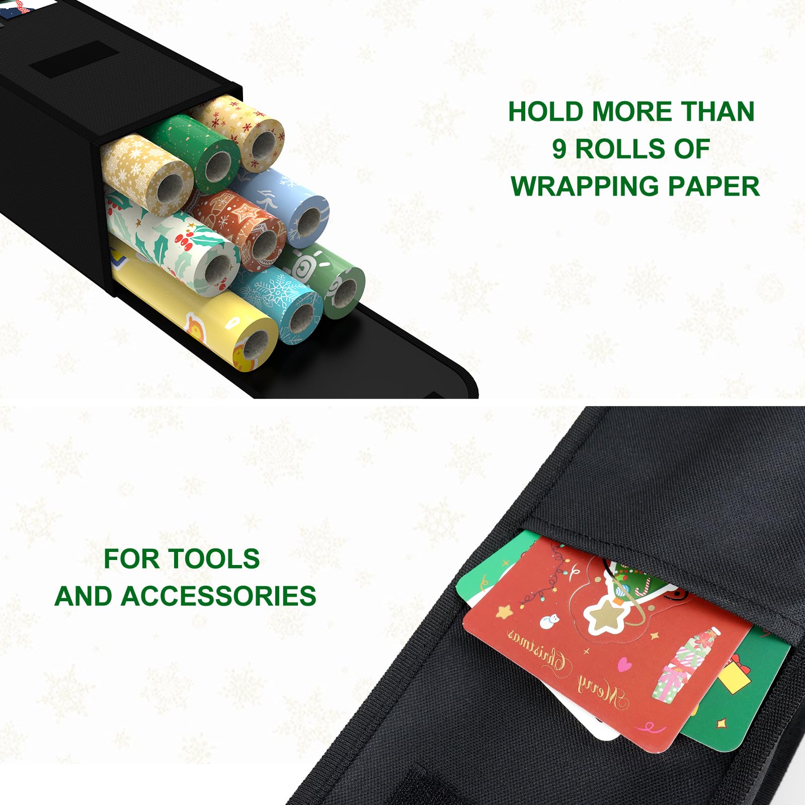 - 【Premium Materials】The wrapping paper storage is made of good quality cloth, which is dustproof. Help you quickly find and organize gift wrapping rolls during Christmas, Thanksgiving, Halloween, birthdays, or any other holiday.