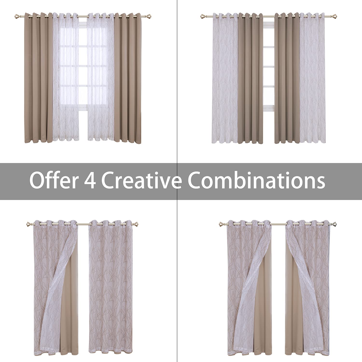 - OFFER MORE CREATIVE COMBINATIONS: 2 sheer curtain panels and 2 room darkening curtains can be hung in many creative ways as you like. Combining the branch printed voile sheer curtains and soft blackout curtains will add a touch of luxury to your home.