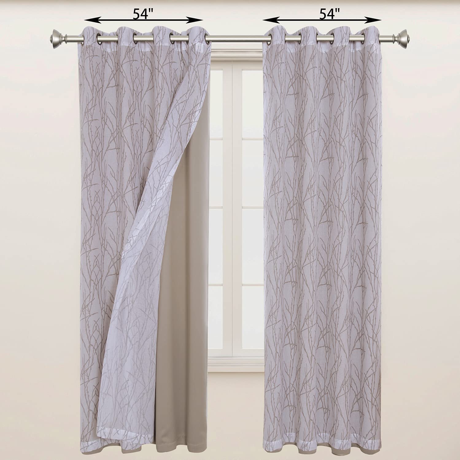 - WHAT'S IN THE PACKAGE?: Each set includes 2 pieces branch print sheer curtain and 2 pieces blackout curtains. Each curtain panel measures 54 wide by 84 inch long and finished with 8 grommets with 1.6 inch diameter that fits well with standard curtain rods, making them easy to install and move along the pole.
