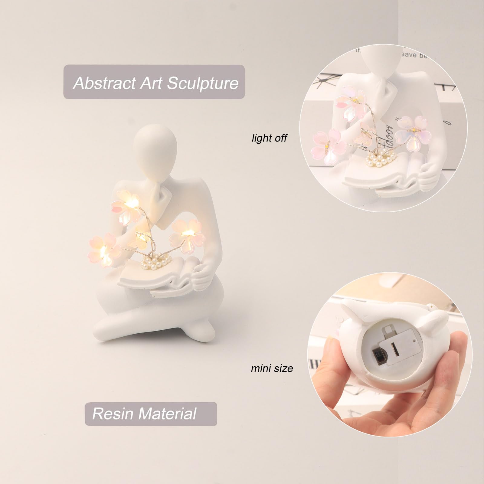 Bookshelf Decor Thinker Statue, Battery Powered Night Light, Modern Abstract Reading Figurines Home Decoration, Living Room Office Shelf Table Desk Decor, Aesthetic Gift
