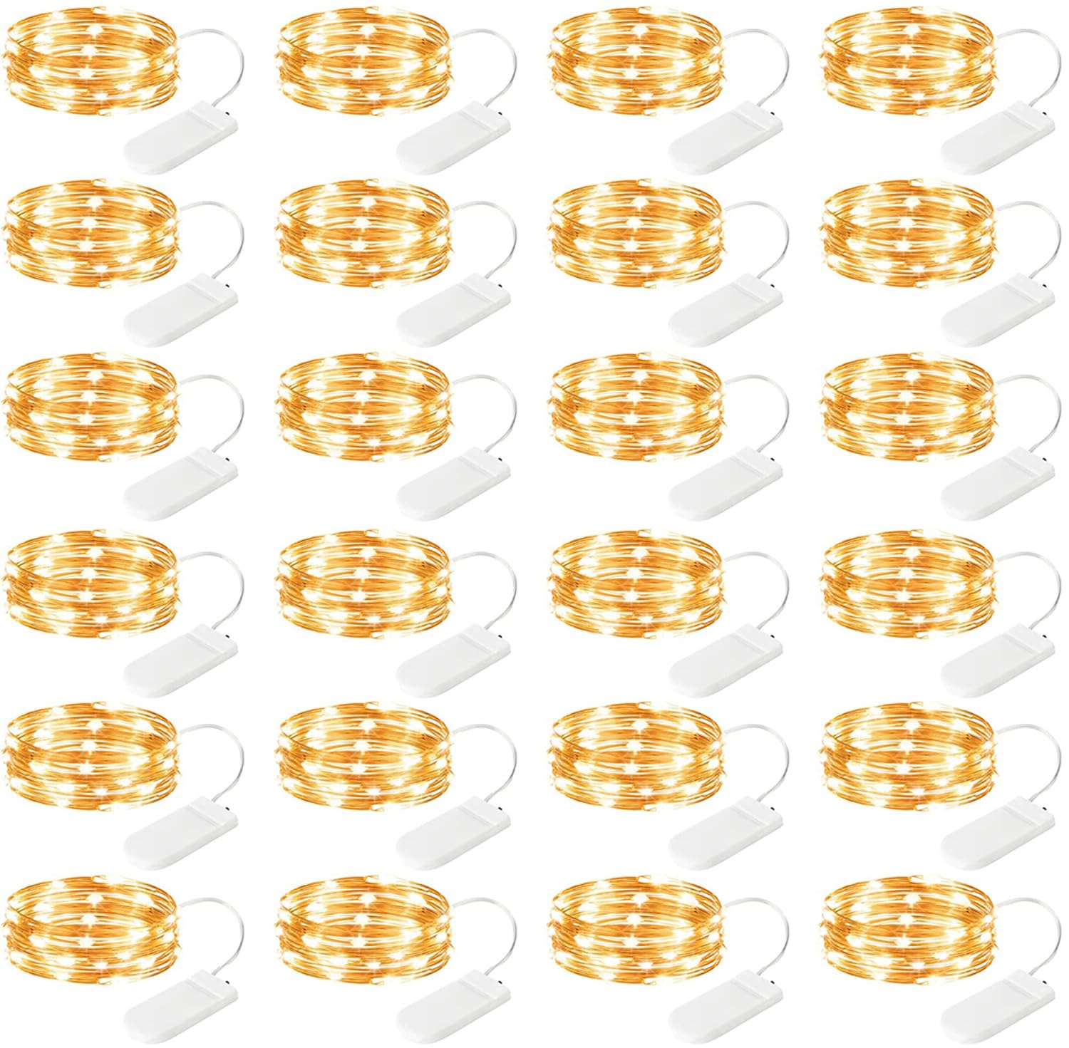 Brightown 24 Pack Fairy Lights Battery Operated String Lights - 7 ft 20 LED Mini String Lights Waterproof Silver Wire Firefly Lights for Vases Mason Jars DIY Crafts Plants Table Centerpieces Wedding