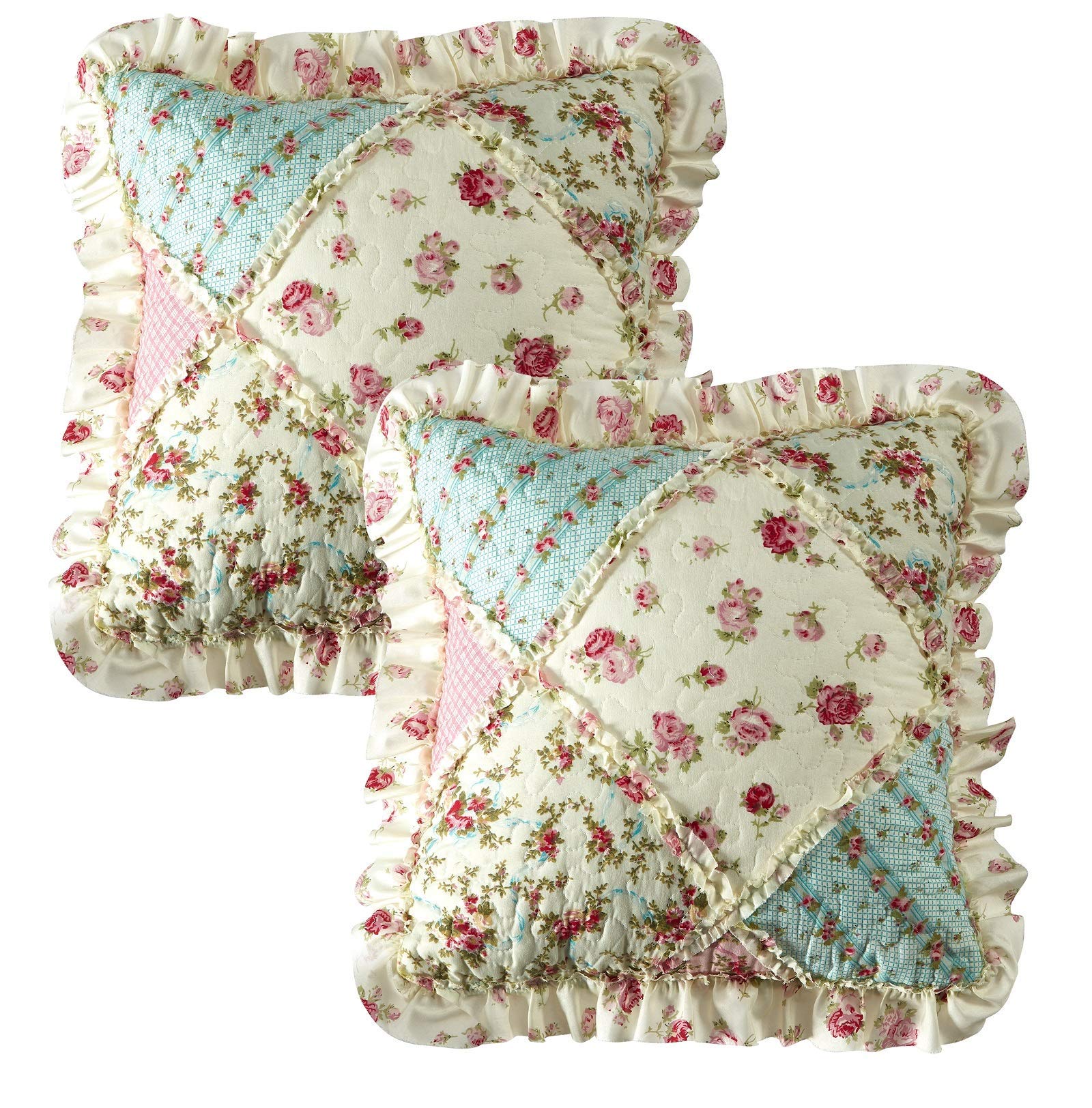 - DURABLE AND COMFORTABLE: Premium quality of microfiber, all new material, made to last. 2' delicate stitched quilting with ruffle edges, soft, warm and lightweight for all seasons. Size: 18x18'. Pack of 2.