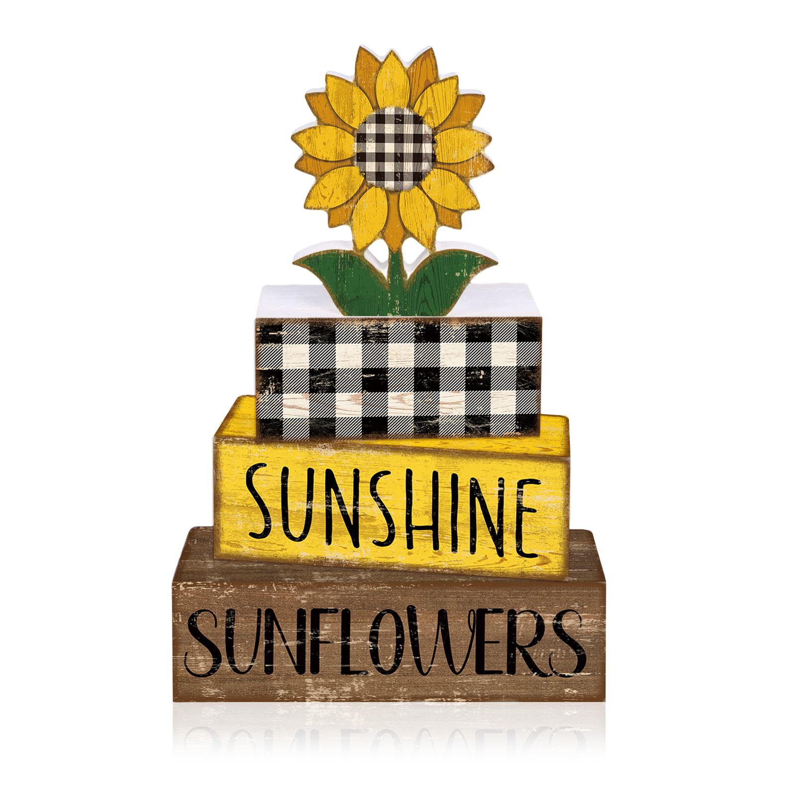 Details: Rustic Sunflower Farmhouse Book Stack Wooden Tiered Tray Decor - Add a touch of summer charm to your home with this sunflower-themed wooden book stack block signs! Featuring a rustic distressed finish, hand-painted details, and sturdy construction, it’s perfect for tiered trays, shelves, or coffee tables. Made from high-quality wood, this durable and stylish decor piece brings warmth to any space. Whether for your own home or as a thoughtful gift, this farmhouse-inspired decoration is a beautiful way to celebrate the season!