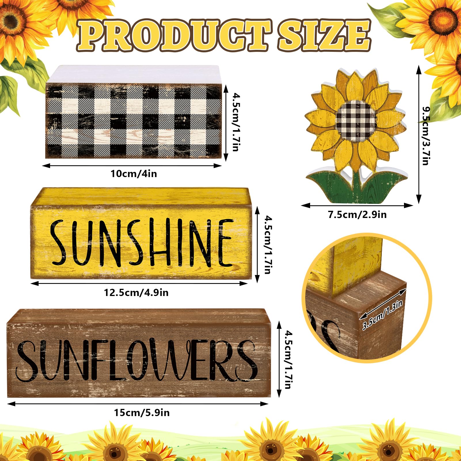 - Perfectly Sized: This summer table decor set includes three wooden pieces (4” x 1.7” x 1.3”, 4.9” x 1.7” x 1.3”, 5.9” x 1.7” x 1.3”) and one sunflower decoration (2.9” x 3.7” x 1.3”). It fits beautifully on tiered trays, mantels, entryway tables, or kitchen counters, bringing seasonal charm to any space