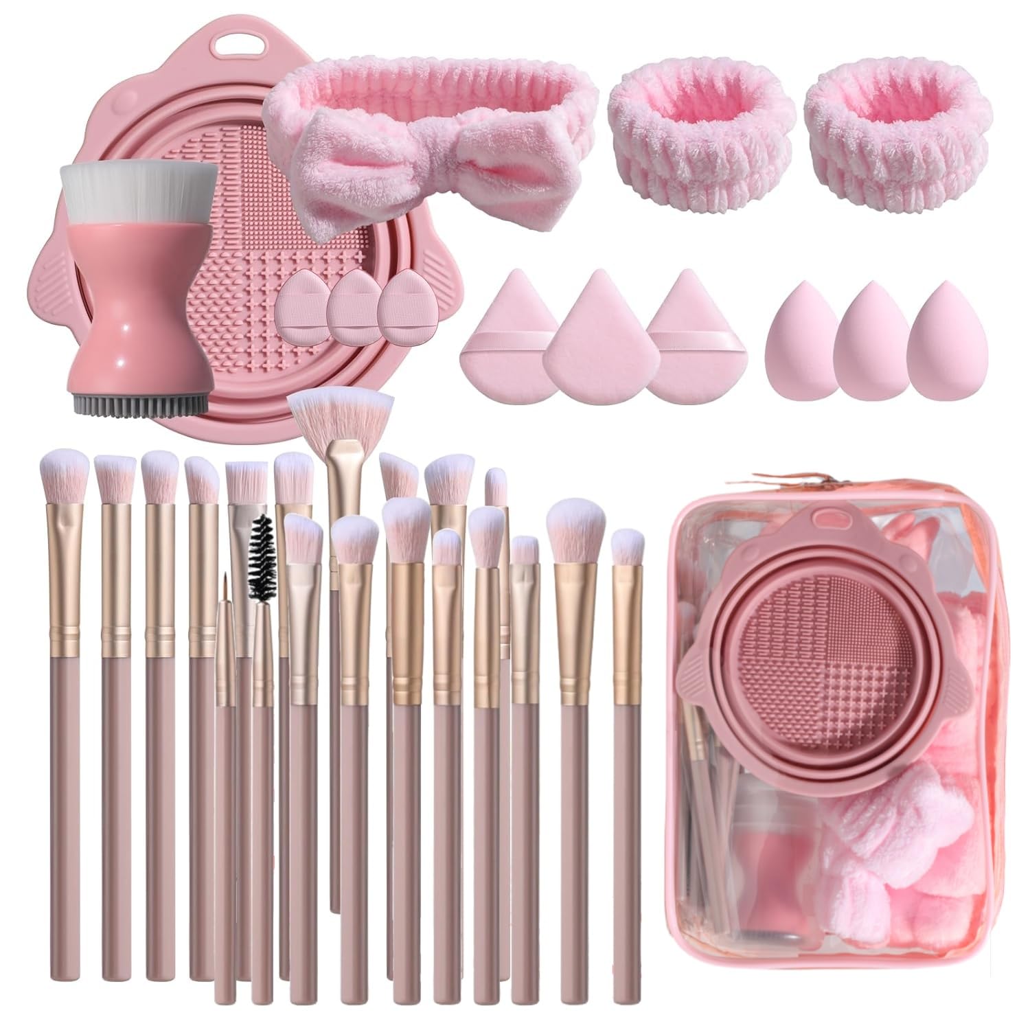 BS-MALL Makeup Brush Set 34 Pcs – Premium Synthetic Foundation Powder Concealers Eye Shadows Blush Brushes with Pouch (PINK)