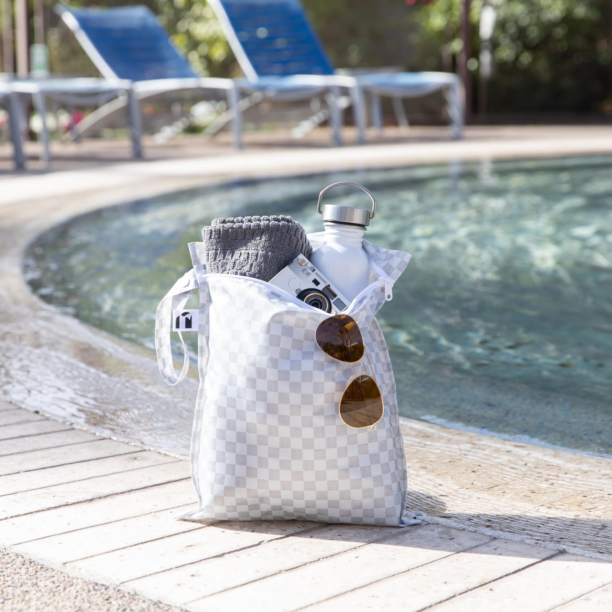 - VERSATILE USE - Not just for wet items! Use as organizers for storage, packing cubes, or diaper bag essentials. Built-in snap handle makes it easy to attach to strollers, suitcases, or hooks—great for travel, camping, pool days, and more.