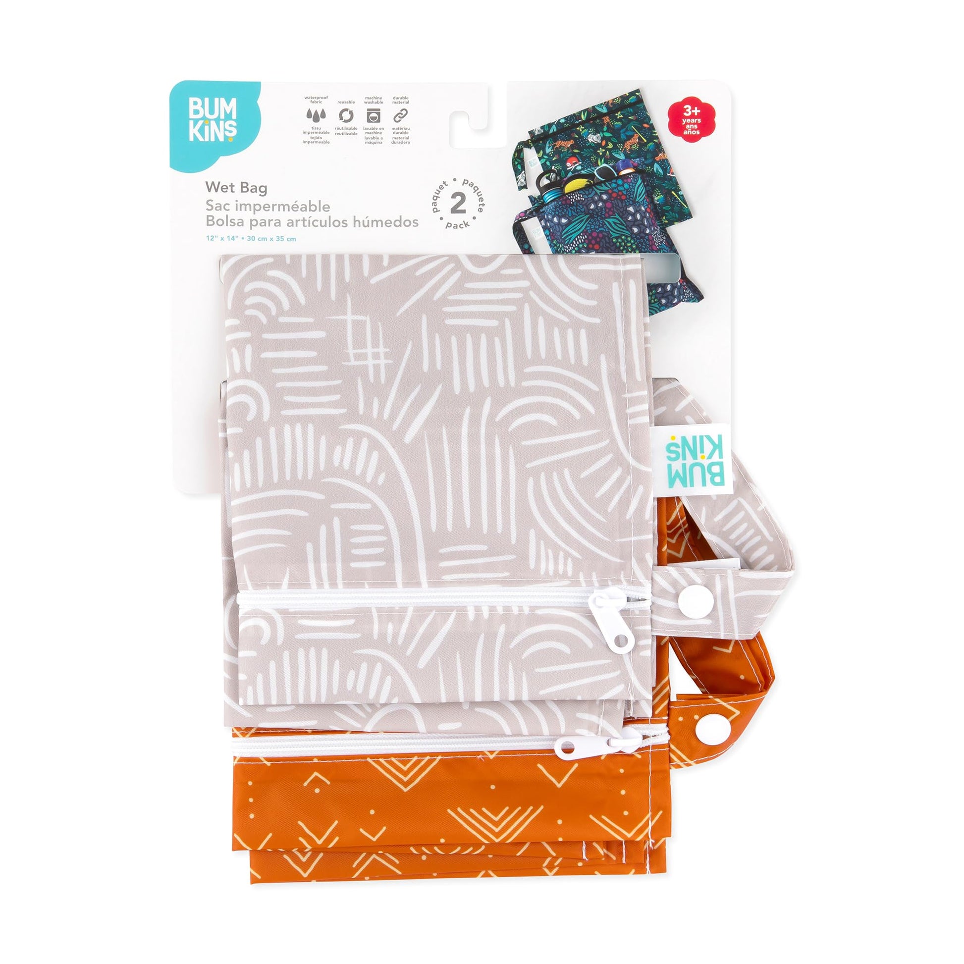 Bumkins - Waterproof Wet Bag - For Baby, Travel, Swim Suit, Cloth Diapers, Pump Parts, Pool, Gym, Toiletry, Strap to Stroller - Reusable & Easy to Clean - 2pk - Desert Boho