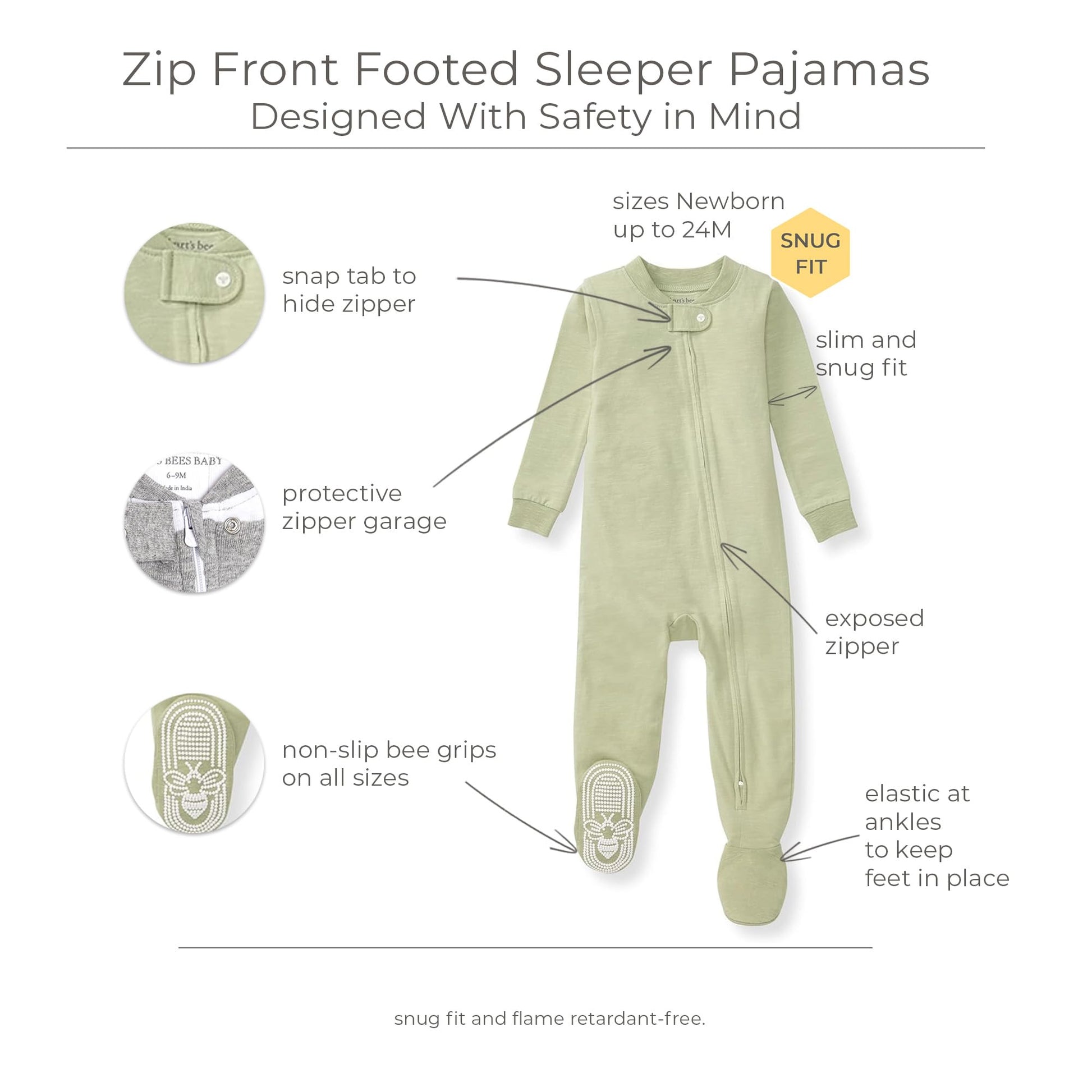 Burt's Bees Baby Unisex Baby Sleeper, Honeysoft Pajamas, One-Piece Zip-up footie PJ, Soft Organic Cotton & Lyocell Blend