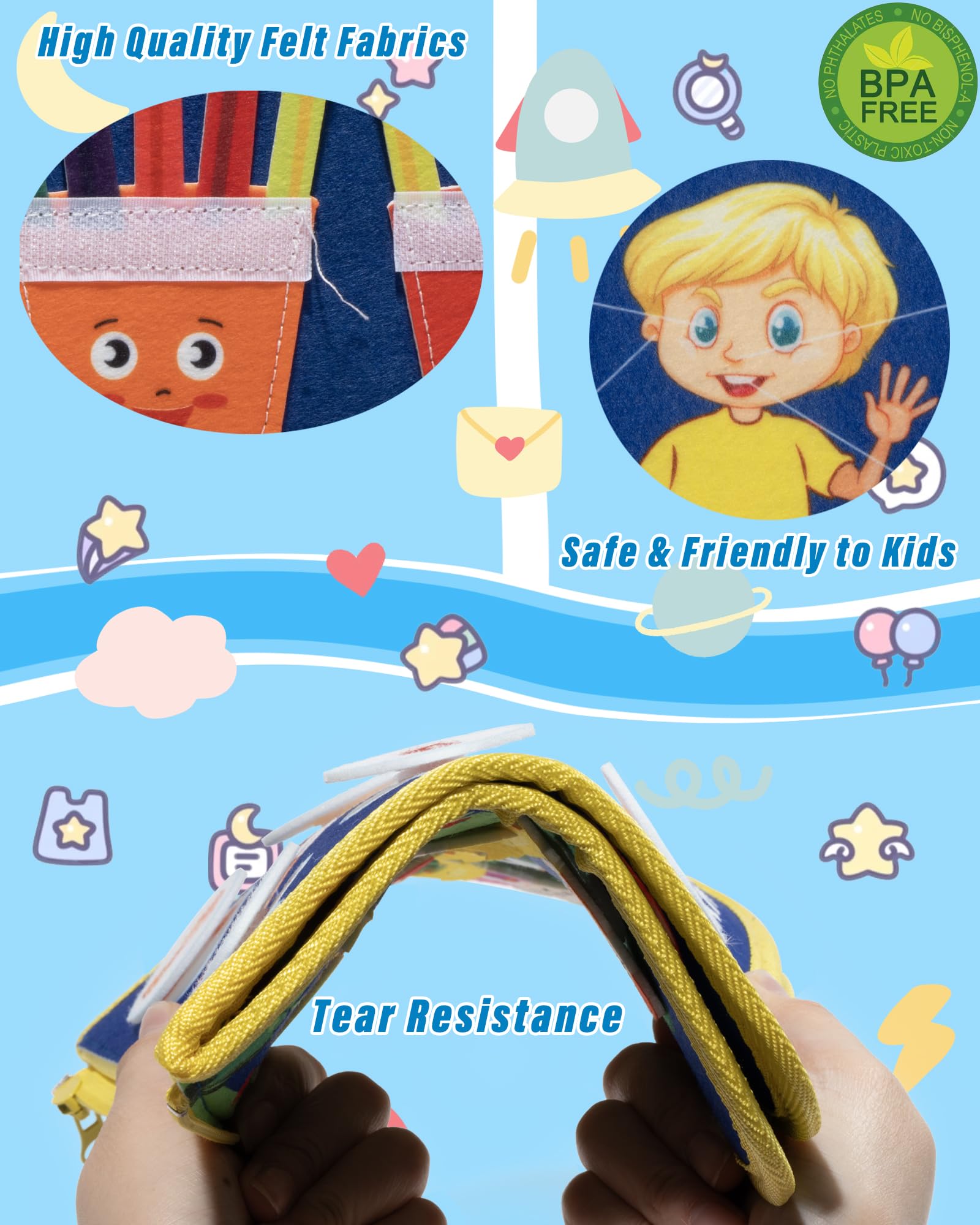 - 【Safety and Materials】Crafted from soft, skin-friendly felt that is non-toxic, smooth, and free of sharp edges, ensuring the safety of little hands. The reinforced stitching ensures durability and prevents parts from falling off, making it a safe and long-lasting toy. The board also offers soothing activities that help children wind down from the day's excitement to a peaceful bedtime, supporting the creation of a bedtime routine.
