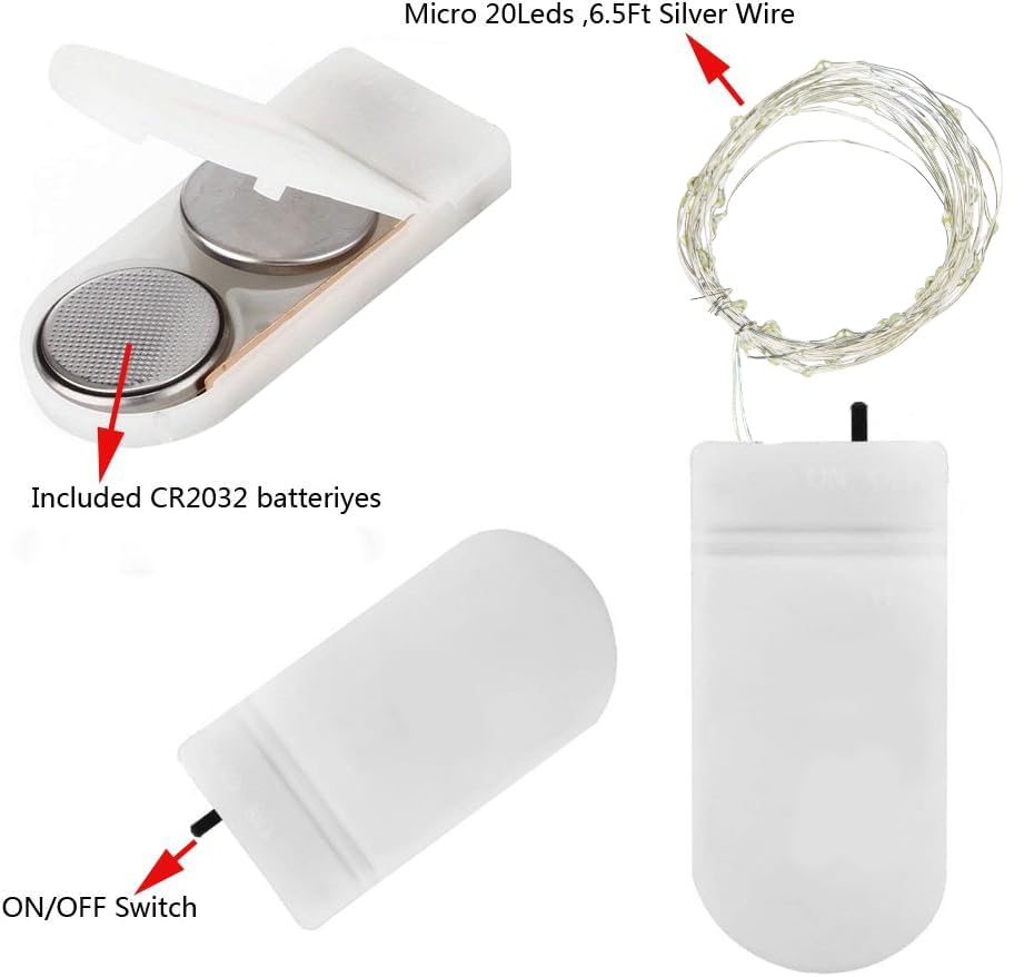 - Mini Battery Fairy Lights: You'll receive six sets of Silver Wire String Lights, each string measuring 6.6Ft/2 meters in length, featuring a mini battery case and 20 micro LEDs.