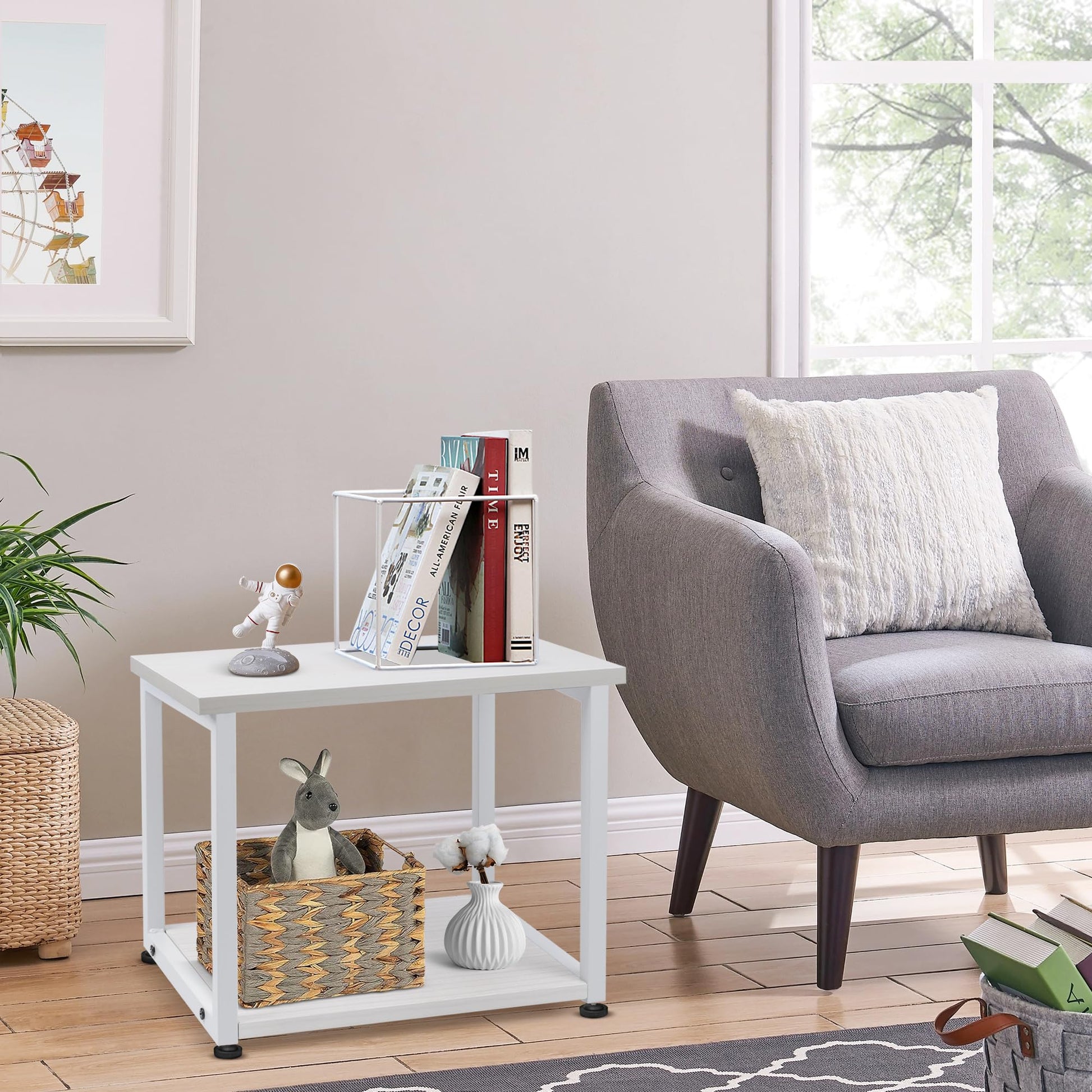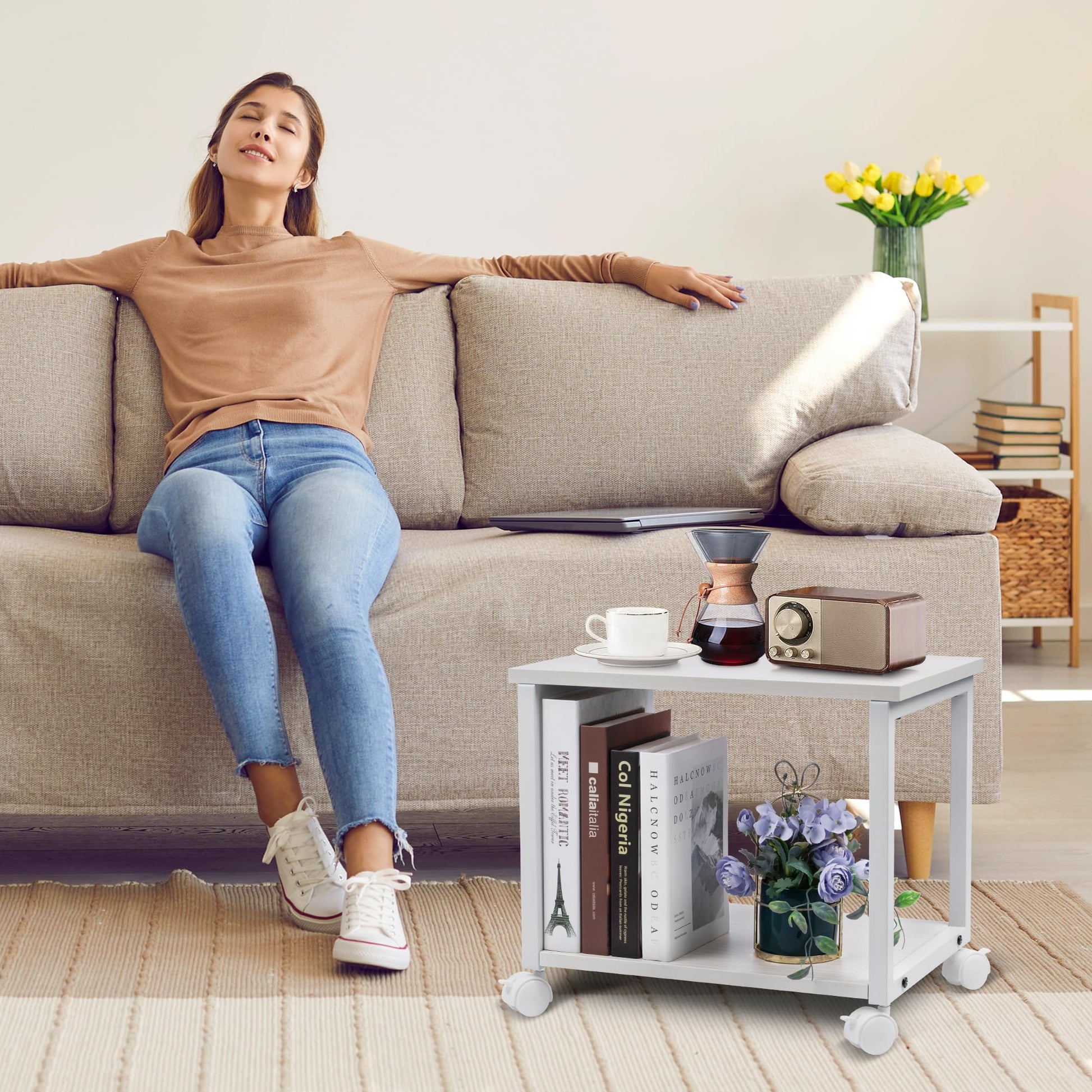 Cakokow Under Desk Printer Stand - 2-Tier Industrial Mobile Printer Table with Storage Shelf, Heavy Duty Wood Rolling Printer Cart with Wheels for Home and Office,Maple White