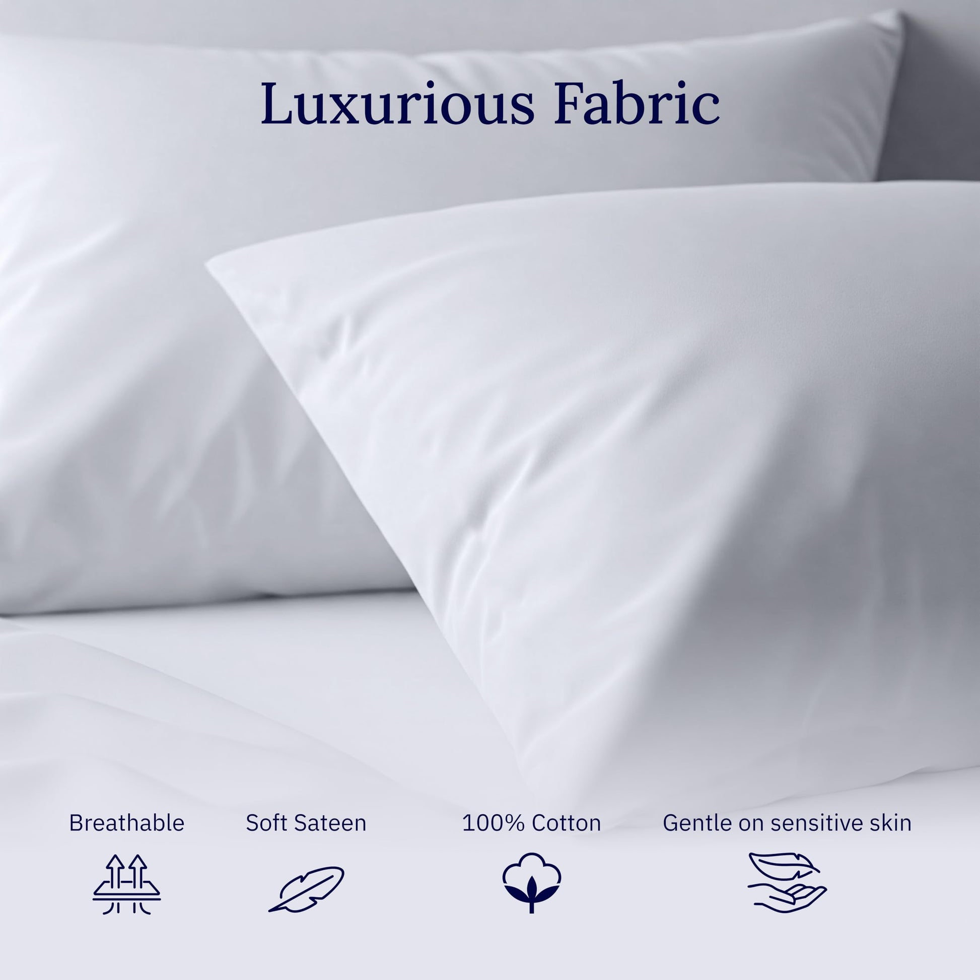 - SMOOTH & CRISP 100% COTTON SATEEN PILLOWCASES TO REMIND YOU OF FIVE-STAR HOTELS: While many make exaggerated claims of egyptian-cotton quality, we deliver authentic 100% cotton sateen that is loved by people for its smooth, cool, and crisp feeling. Now, rest your head on the bed of clouds with our 600 TC white pillowcase set that makes you feel like you’re spending a night in a five-star hotel every day.