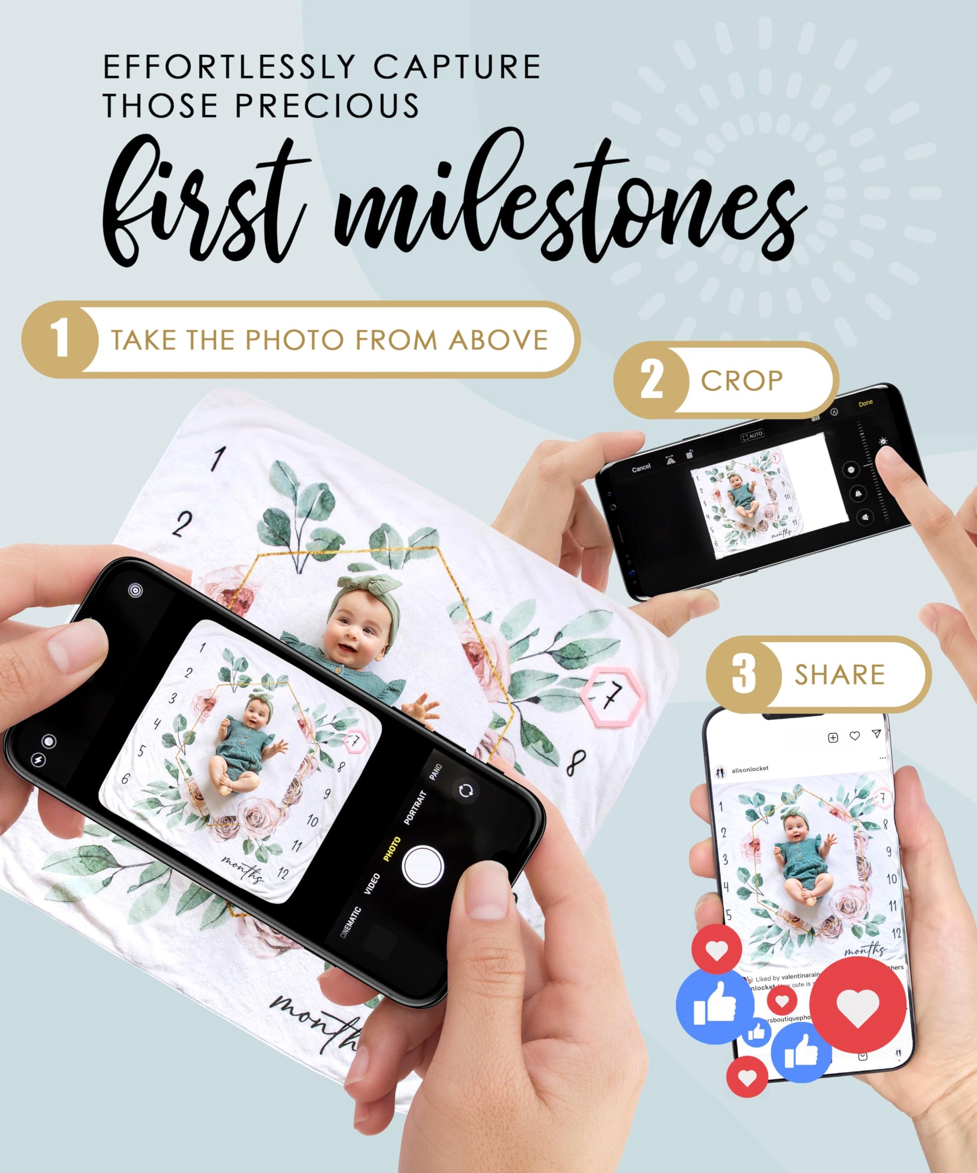 - Easily Capture Precious Memories - Designed by Australian photographers, our soft, watercolor baby girl monthly milestone blanket makes a timeless backdrop to track your baby's journey from newborn to twelve months. Our stunning square design makes it easy to photograph and crop Instagram-worthy pics of your bub’s first year. Create standout memories effortlessly.