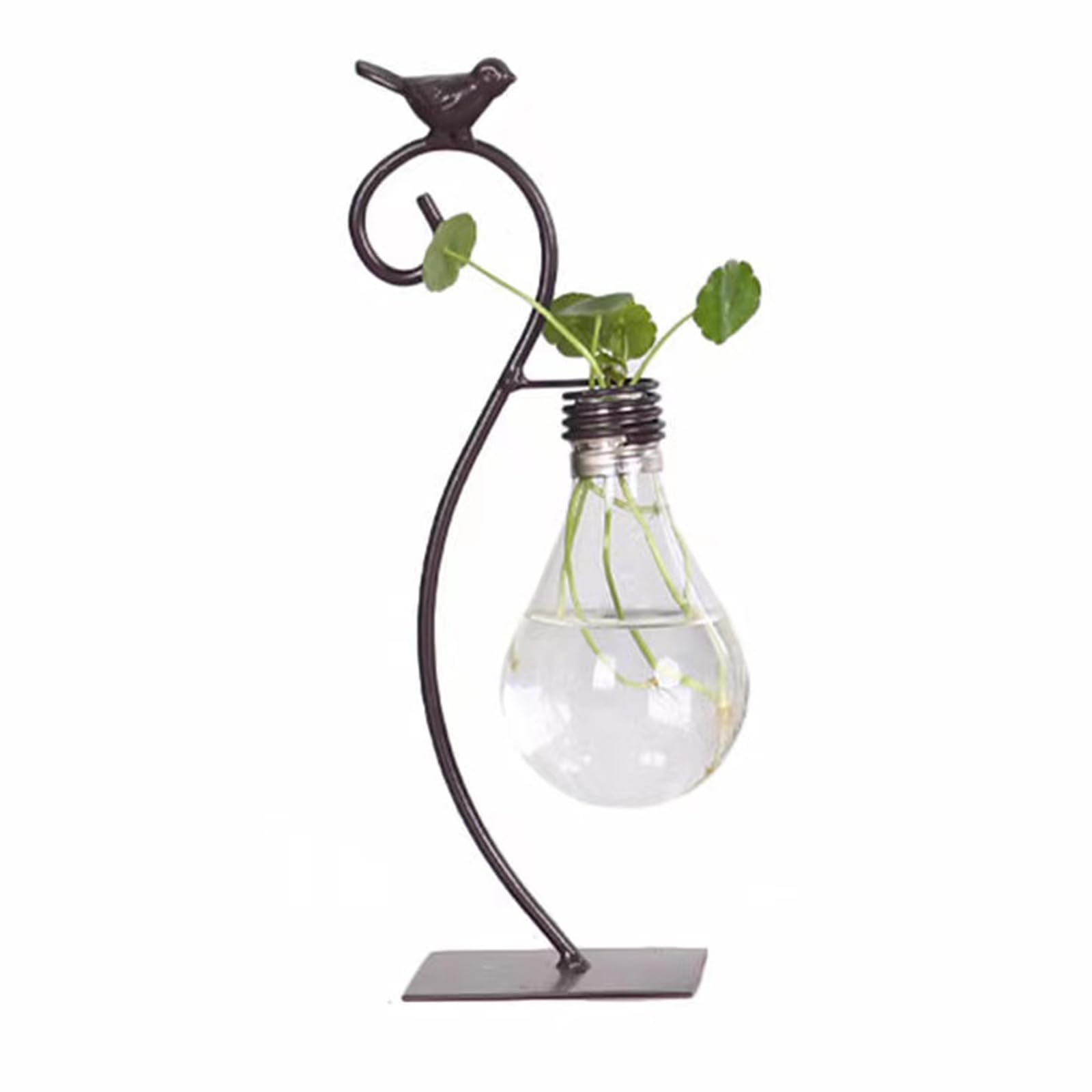 Calnegaris Desktop Glass Planter Hydroponics Vase, Planter Bulb Vase with Holder, Creative Bird Lant Terrarium Stand for Home Decor, for Flowers, Succulents, Propagation
