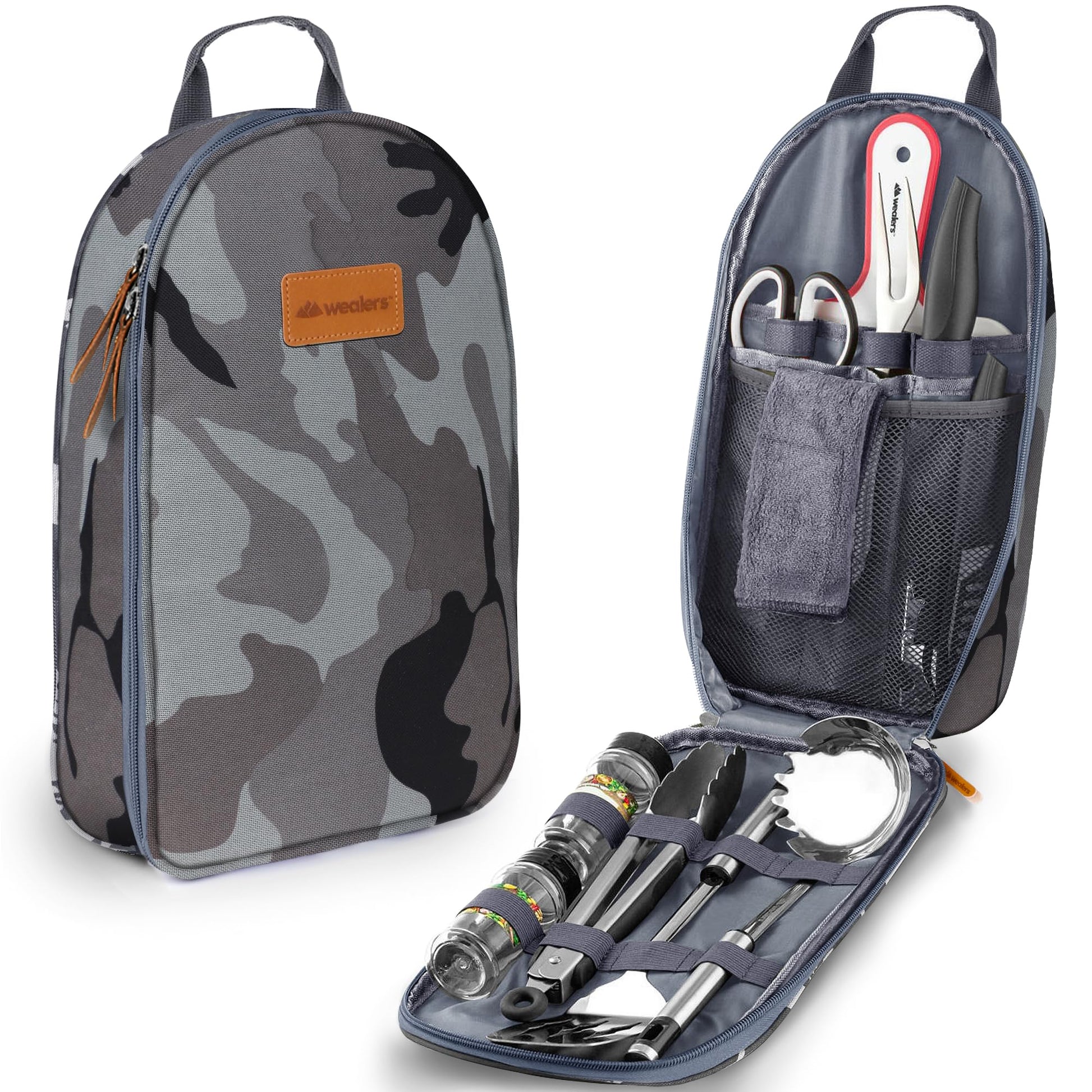 Camp Kitchen Cooking Utensil Set Travel Organizer Grill Accessories Portable Compact Gear for Backpacking BBQ Camping Hiking Travel Cookware Kit Water Resistant Case