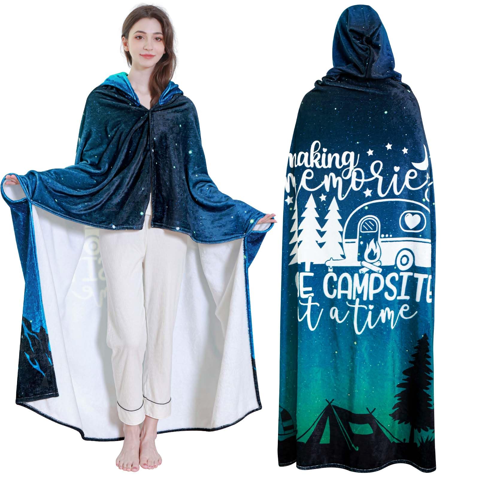 Camping Wearable Blanket Hoodie - Camping Gifts for Women Men - Camper Blanket Gift for Camper Outdoor - Camping Essentials Accessories - Camp Decor for Bedding RV Campsite Travel Hiking 70"x60"