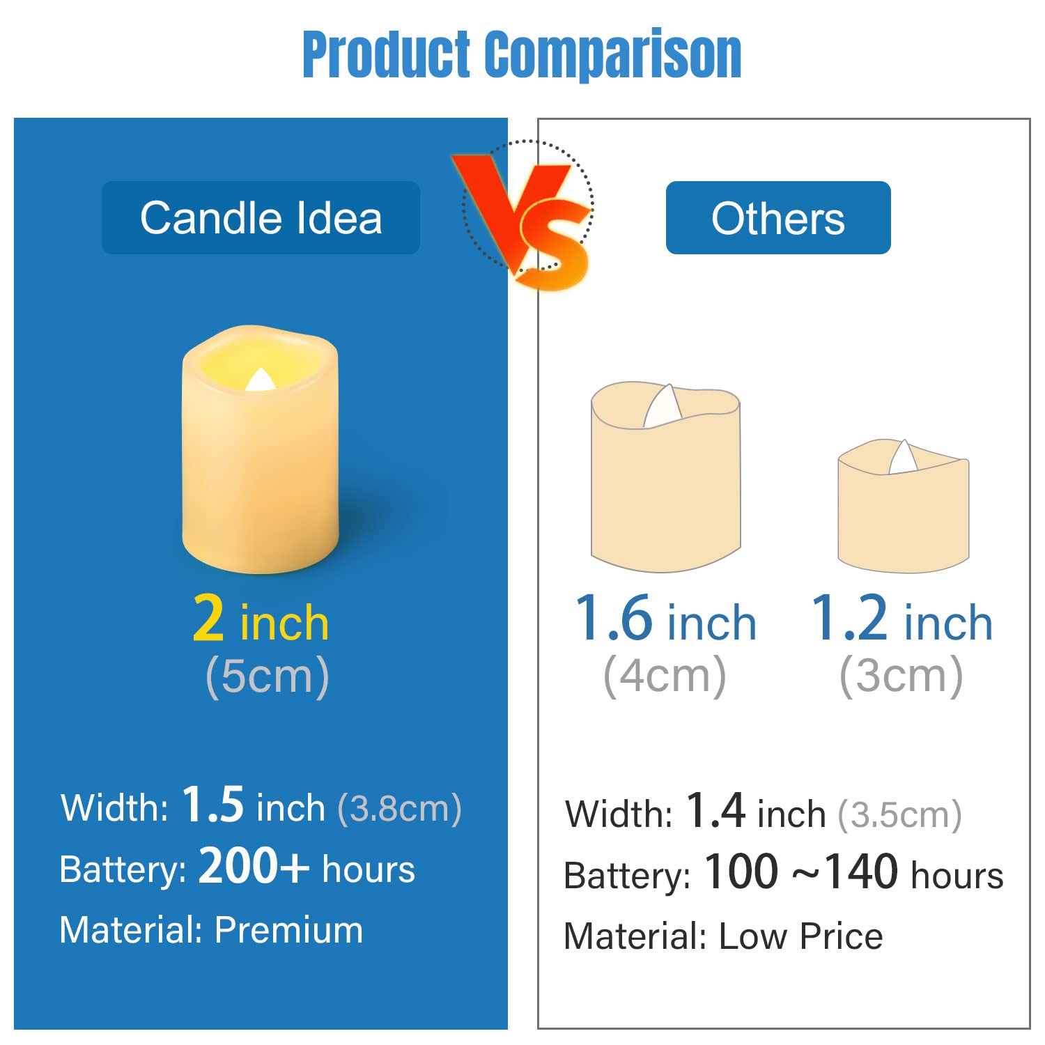 CANDLE IDEA Flameless LED Votive Candles 24 Pack, 1.5" x 2", Battery Operated Flickering Electric Outdoor Flameless Tea Lights, Fake Tealight Candle Bulk for Wedding, Christmas, Halloween Decorations