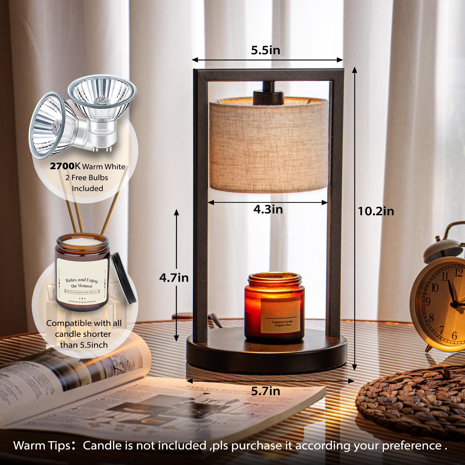- Elegant Home Decor: Comes with warm white 2 x 50 watt GU10 bulbs to create a cozy atmosphere, the linen cloth lampshade and whole black metal body are blending classic and modern designs. The candle burner for scented wax is an exquisite functional decorative lamps, night light for home living room, bedroom, bathroom, yoga studios, beauty salon, barber room and more