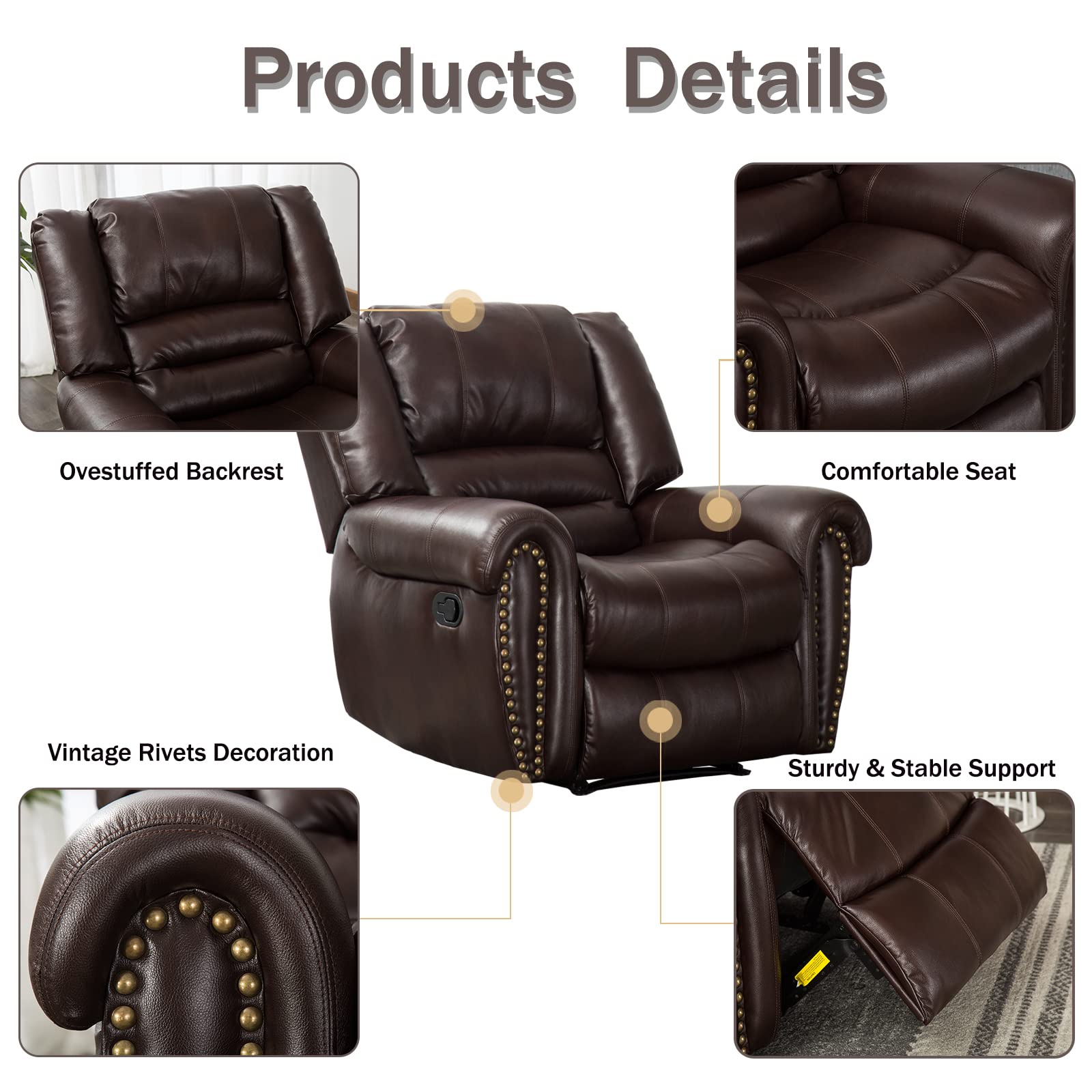 CANMOV Leather Recliner Chair, Classic and Traditional Manual Recliner Chair with Comfortable Arms and Back Single Sofa for Living Room, Brown