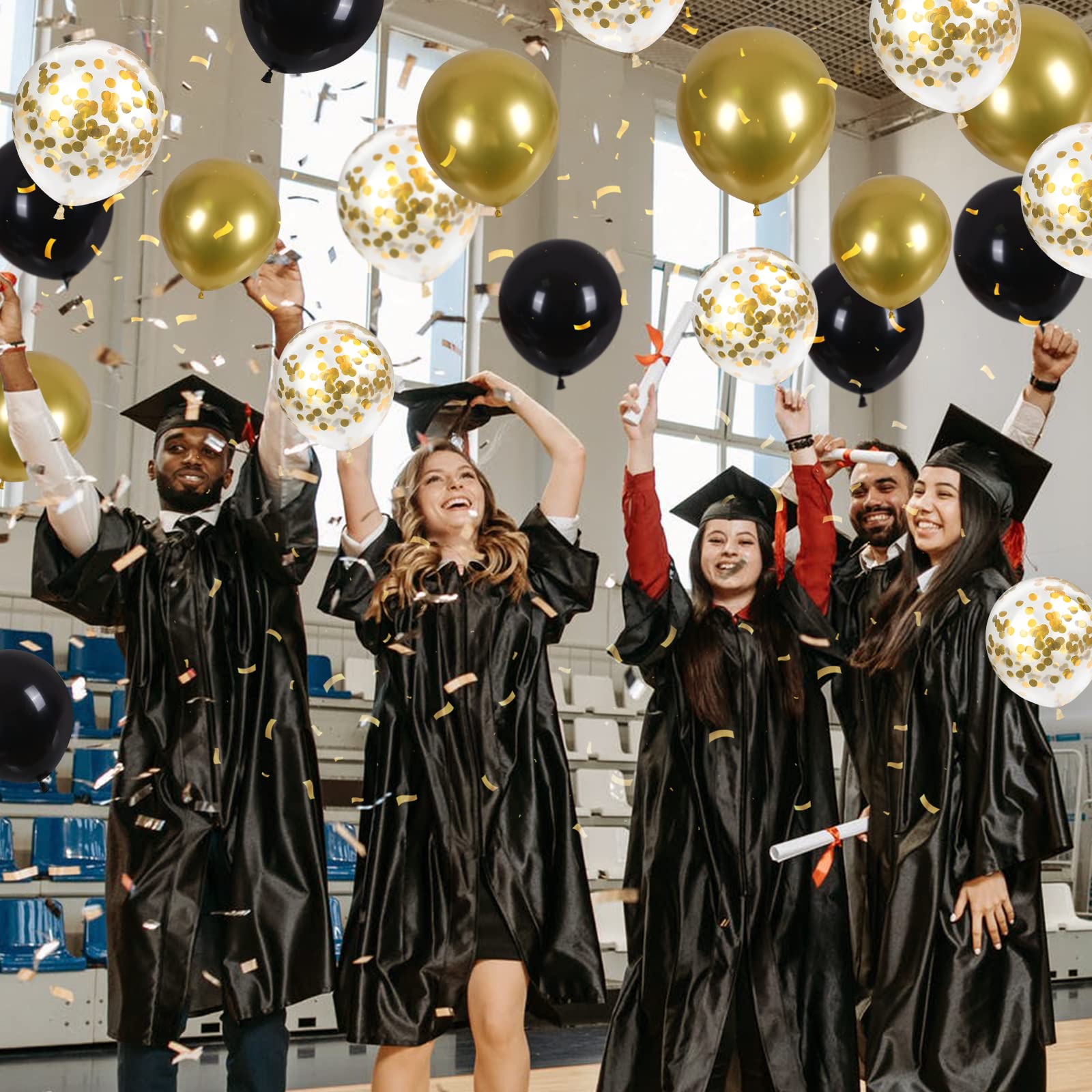 - π[ Perfect Party Supplies ] : With a luxurious mix of black, gold, and metallic colors, you can make them into a balloon garland or table balloons. The black and gold party decorations is perfect for your different theme party. Like Graduation, Birthday parties, Weddings, Baby Shower, Anniversary, Retirement, Prom, Festival Parties etc.
