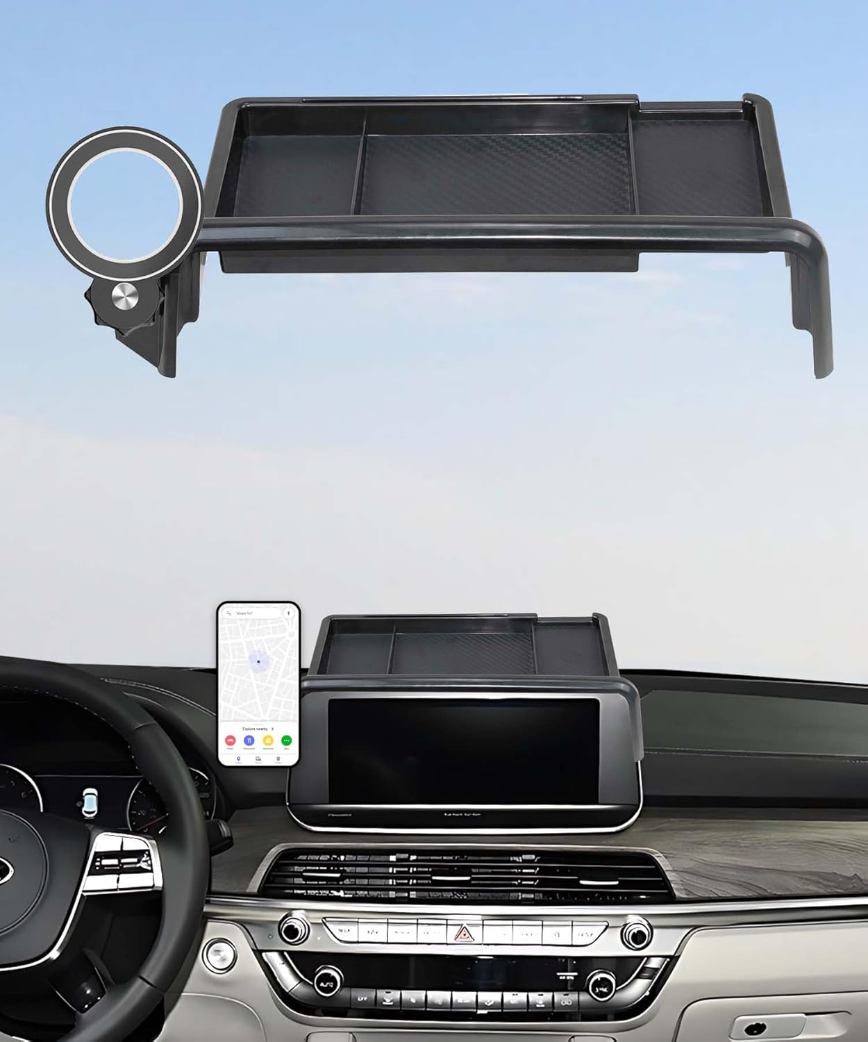 Car Phone Holder for KIA Telluride 2020 2021 2022 Accessories Apply to 10.25 Inch Screen Fixed Clip Magnetic Cell Phone Mount Hands-Free 360 Degree Rotation with Dashboard Storage Tray