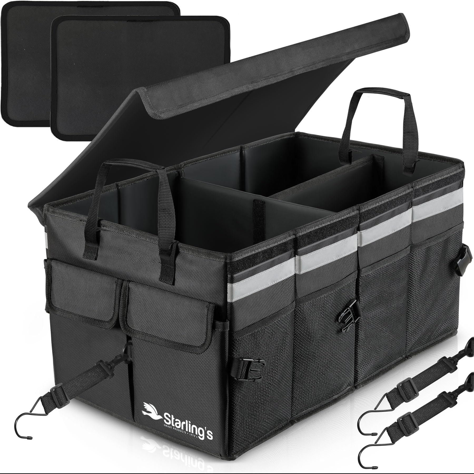 Car Trunk Organizer – Large Collapsible Storage Box with Adjustable Compartments – Heavy-Duty Cargo Organizer for SUV, Truck & Car – Non-Slip Waterproof Trunk Storage Bin for Groceries & Tools - XL