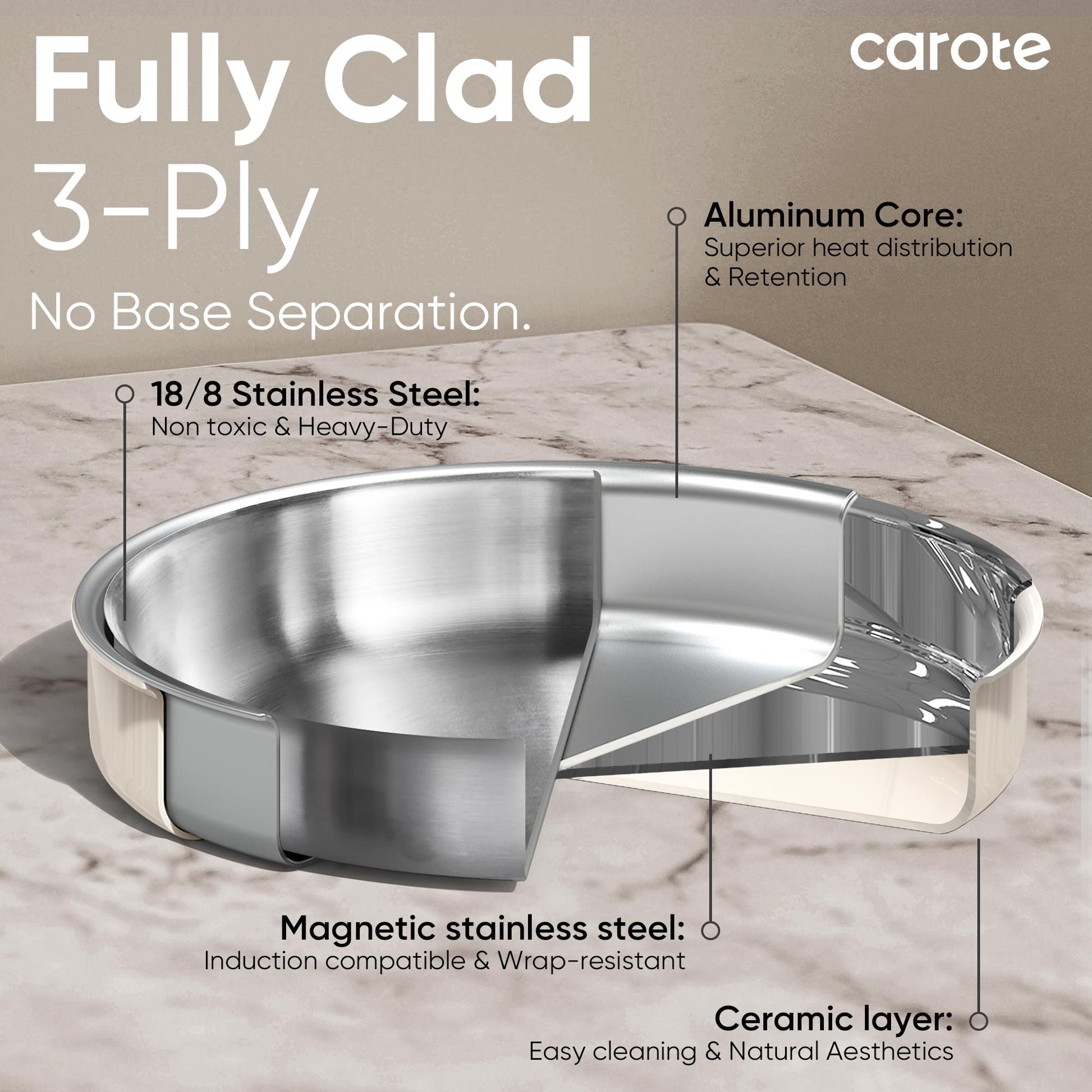 - Ceramic-coated exterior for shiny, with a finely sanded interior three times smoother than regular stainless steel, ensuring perfect food browning and a non-stick, easy-to-clean experience.