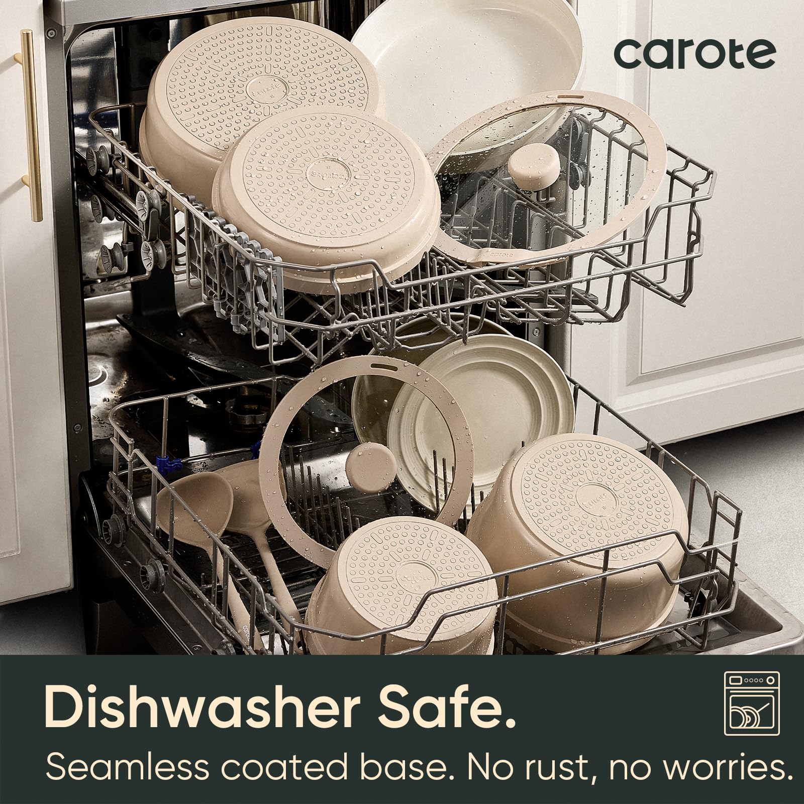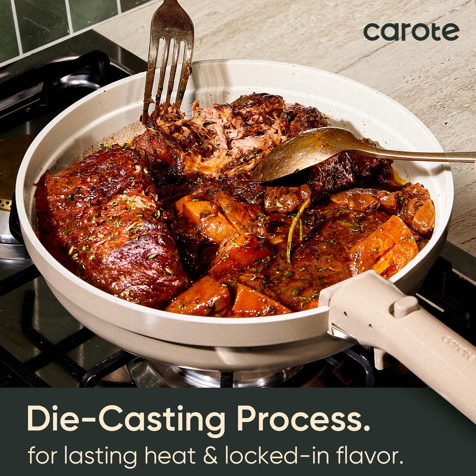 CAROTE 20pcs Ceramic Cookware Set Titanium Nonstick with Detachable Handles, Non Toxic Cookware, Pots and Pans Set Non Stick, Induction Available, Kitchen Cooking Pot and Pan, Dishwasher Safe