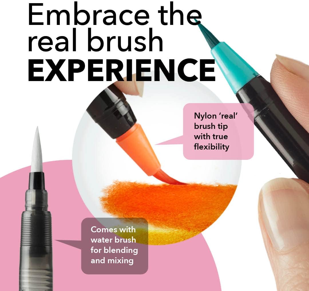 Castle Art Supplies Watercolour Brush Pens Set | 24 Lively Colours, with Flexible Nylon Tips | For adult colouring, painting, lettering – artists and beginners | Travel Case with Extra Water Brush Pen