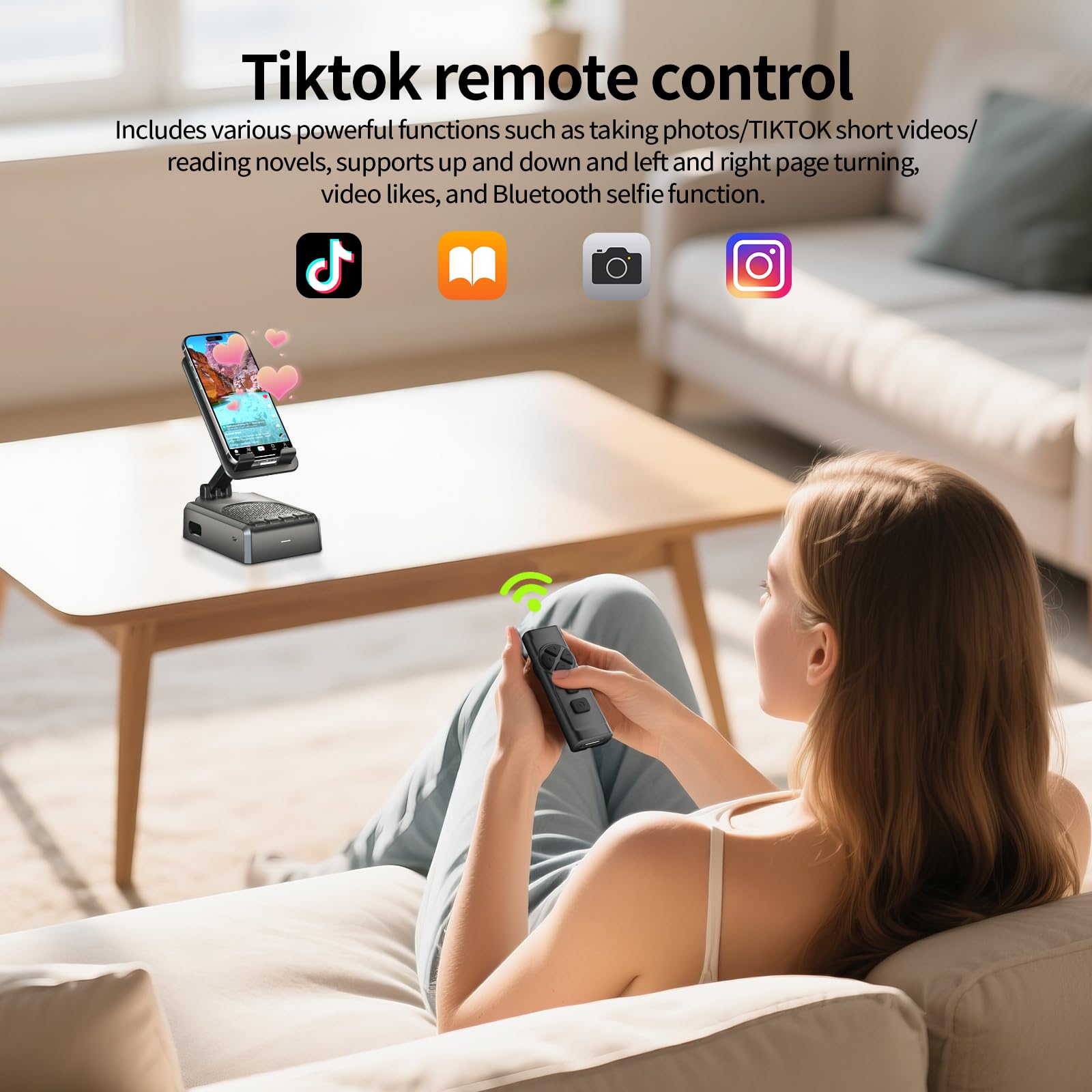 - 3 In 1 Multi-Function Bracket Bluetooth Speaker: The mobile phone holder bluetooth speaker has a stable folding stand, supports multi-angle adjustment, and is compatible with mobile phones, tablets and other devices, allowing you to easily watch TV series, attend meetings or live broadcasts. It is also equipped with a smart Bluetooth remote control that can realize Tiktok remote control playback, pause, like, volume adjustment, Kindle App reading page turning, camera control and other operations, freeing your hands. (Note: It is NOT a charging stand.The remote function is exclusively compatible with the Kindle App and does not work with Kindle devices)