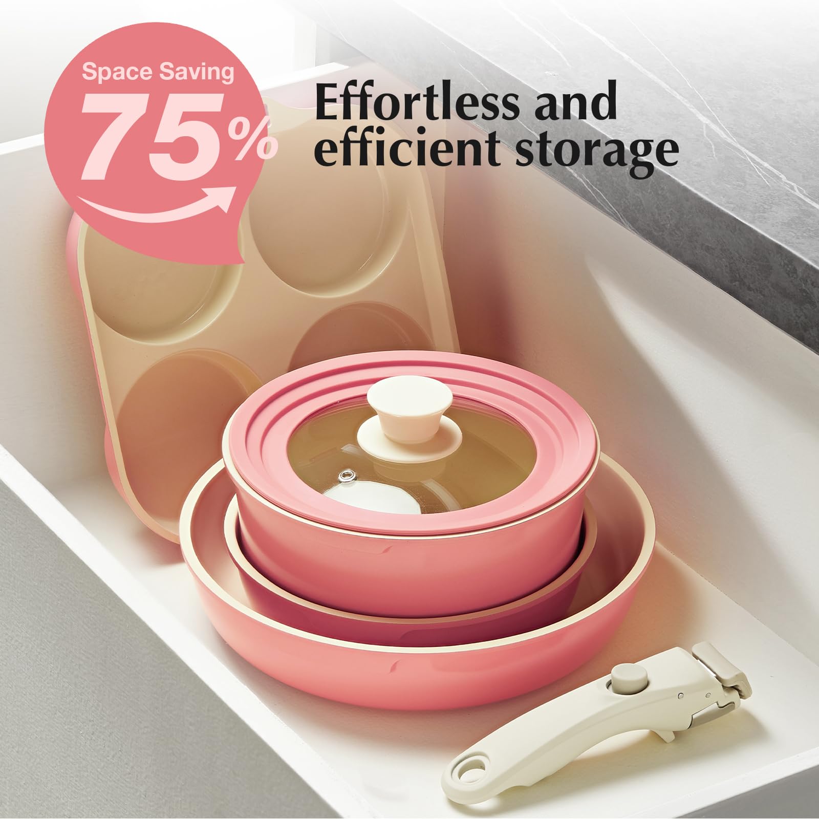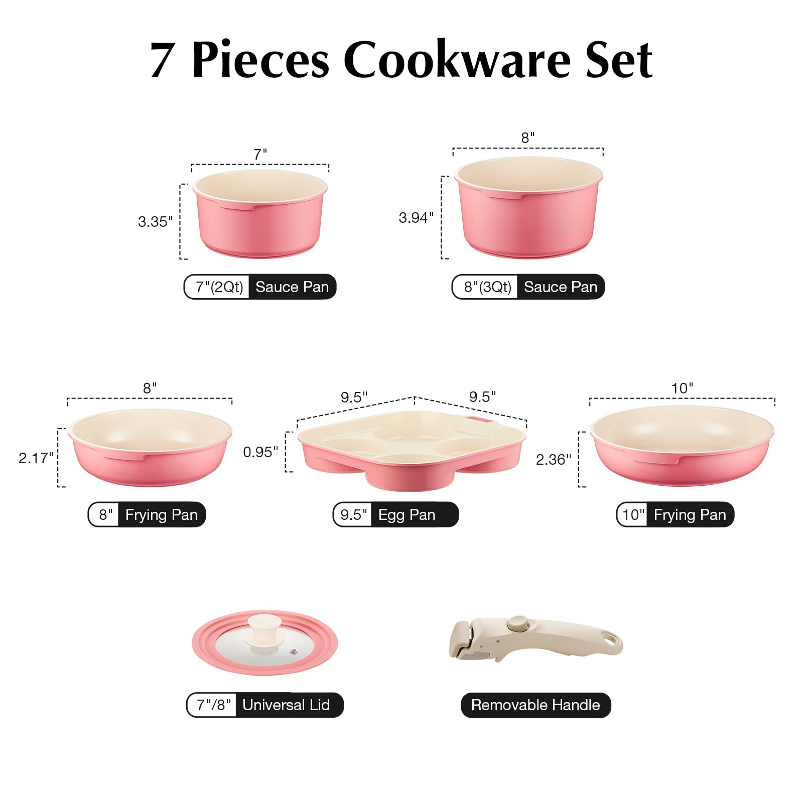 Ceramic Pots and Pans Set Non Stick, 7 Pcs Nonstick Cookware Set with Detachable Handle RV Camping Induction Kitchen Cookware Set Non Stick, PFAS PFOA & PTFE Free