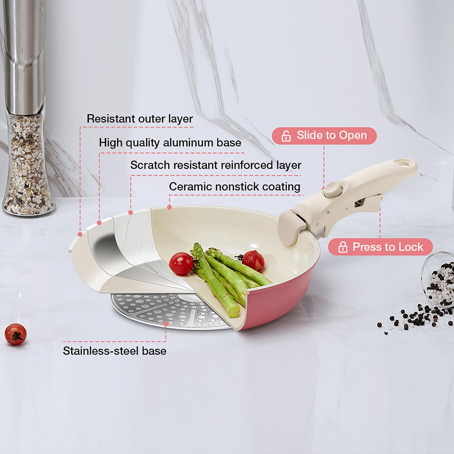 - 【Healthy Cooking Made Easy】 Our ceramic non-stick coating is certified free of harmful chemicals like PTFE, PFAS, and PFOA, making it perfect for low-fat, gluten-free, and vegan recipes. Safeguard your family's health while enjoying effortless cooking and cleaning.