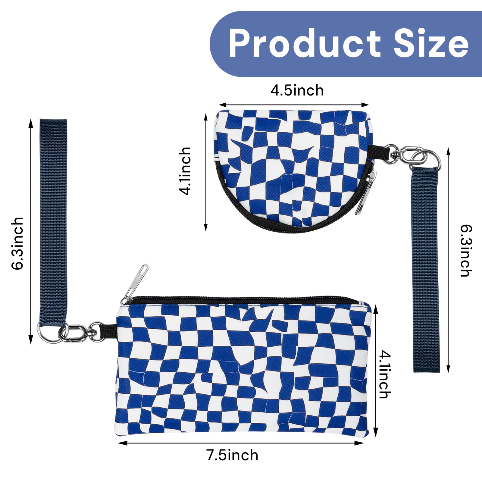 Chanoyu Printed Mini Zip Around Keychain Wristlet Wallet – Large Capacity Dual Pouch Detachable Coin Purse with Keychain, Fits Phone, Soft Nylon, Water-Resistant, Perfect for Daily Use (Blue Check)
